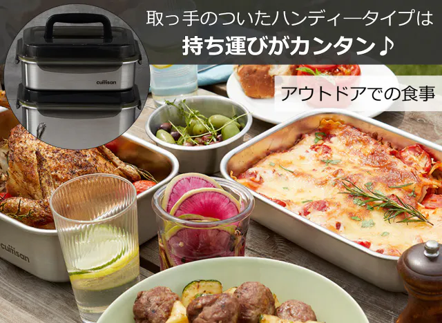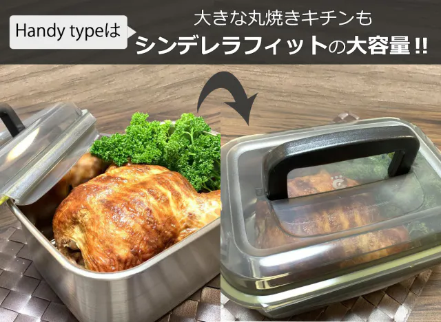 ハンディータイプは、大容量で持ち運びに便利!チキンの丸焼きも入ります。