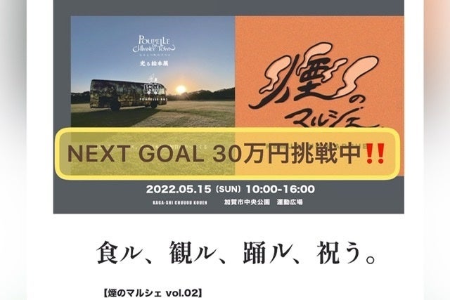 5月8日(日) チアダンスチームSPARKLEと加賀キッズダンススクールが煙のマルシェvol.2の告知イベントを実施しました。加賀市中央公園内「かがにこにこパーク」に遊びに来た親子連れのみなさまと一緒にプペルダンスを踊ってくれました!昨年のプペルバスin加賀温泉郷で大活躍してくれたSPARKLEの子どもたちと今回加わった加賀キッズダンススクールの子どもたち、そして2つのチームの先生たちが毎日のようにプペルダンスで地域の人と人を繋ぐ活動を頑張っています!活動報告をお読みいただいている皆さまへこちらのプロジェクトにたくさんのご支援をいただき、おかげさまで目標の150%まであと少しとなりました。皆さまからのあたたかい応援メッセージやご支援が励みになっています!ありがとうございます!5月15日(日)煙のマルシェvol.2の詳細について、期間限定で加賀市の観光情報が掲載されているInstagramで告知が始まりましたhttps://instagram.com/official_kagaonsen?igshid=YTM0ZjI4ZDI=いよいよイベントまで1週間!引き続きの応援をよろしくお願い致します。大森佳奈子