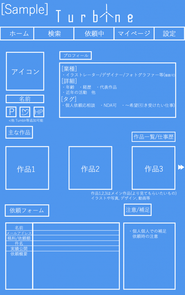 Turbineは多くのクリエイターを紹介, そして依頼を促すサイトです.