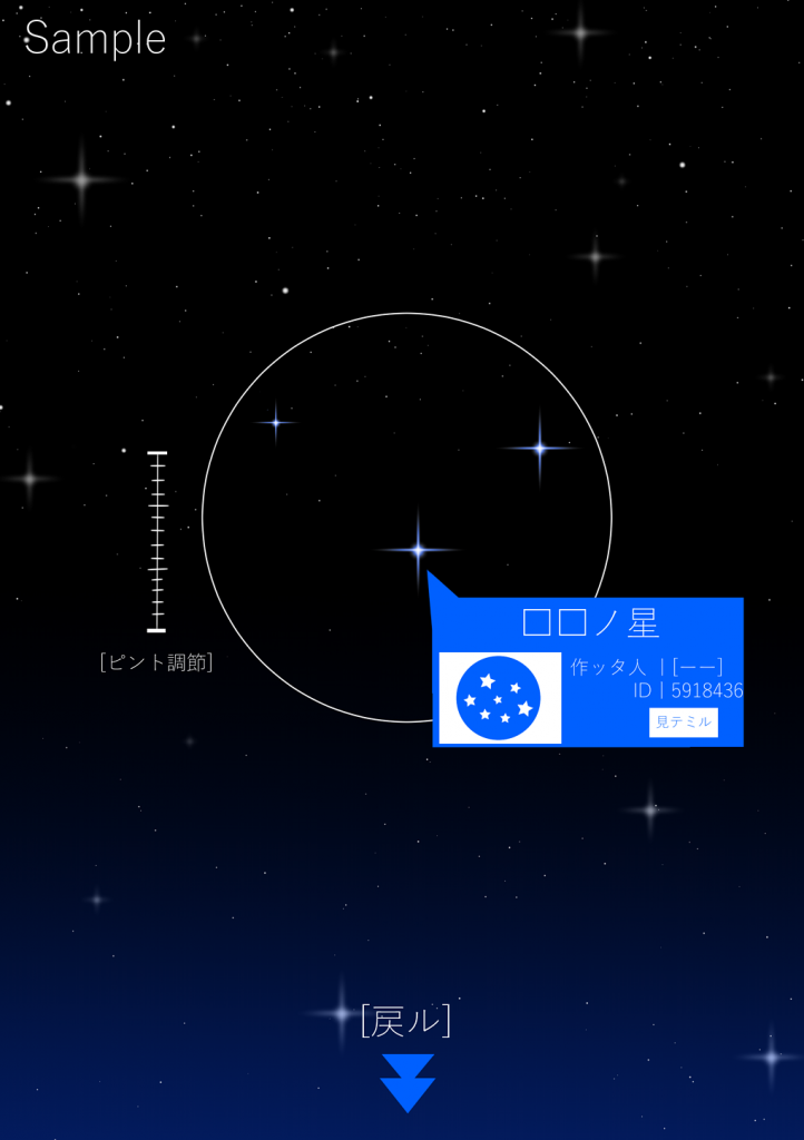 (望遠鏡のようにサークル上の星にピントを合わせ, 誰かの星を見に行けます)