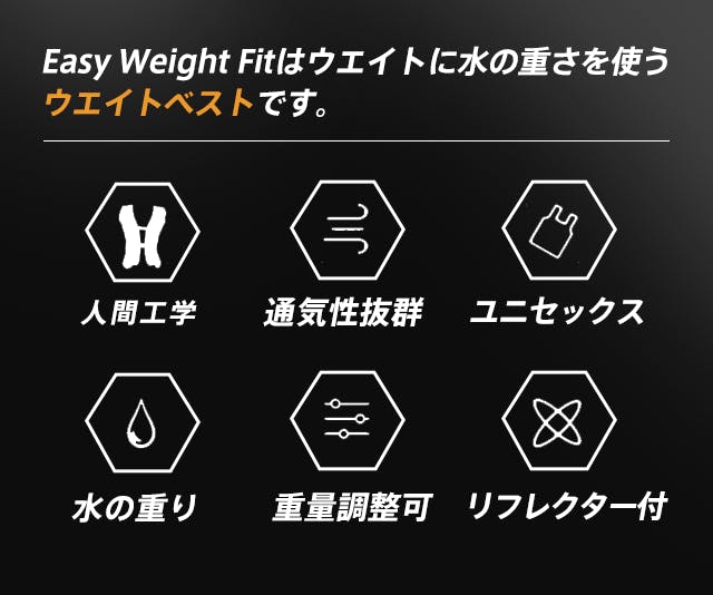 【Easy Weight Fit/イージー・ウェイト・フィット 】は重りに自在に形を変える水を使うウエイトベストです。