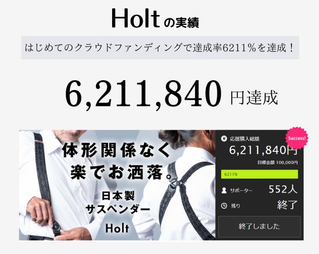 大人の男性ファッションアイテムとして、このホルトを多くの方にお使い頂き、ホルスター型サスペンダーの魅力を知って頂き、サスペンダーの新しい魅力を広めて行きたいと想っておりますので、是非応援購入をお願い致します。