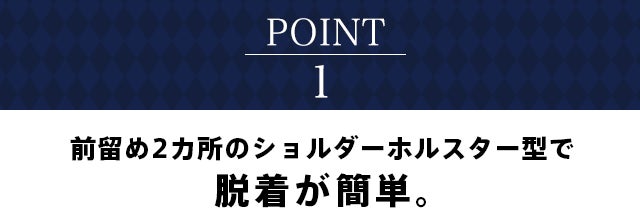 フロント2点留めのショルダーホルスター型で脱着が簡単。