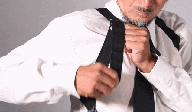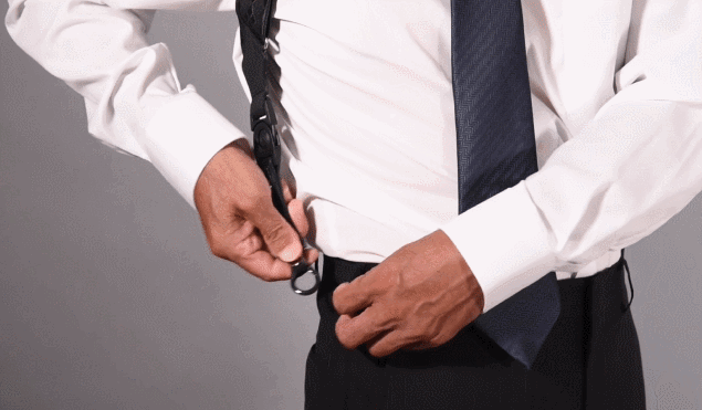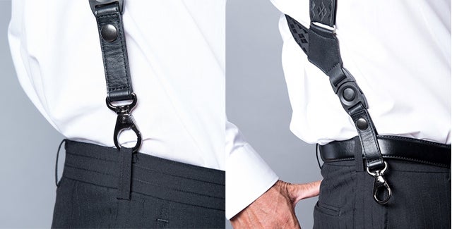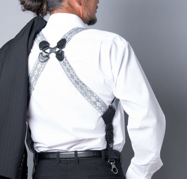 サスペンダーを装着すれば、ズボンを穿くのにベルトは不要。