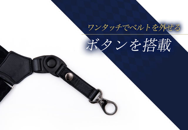 また他のタイプのサスペンダーと違い、ベルトでYシャツの胸ポケットが隠れないので、スマホを胸ポケットに入れる派の男性には嬉しい仕様です。
