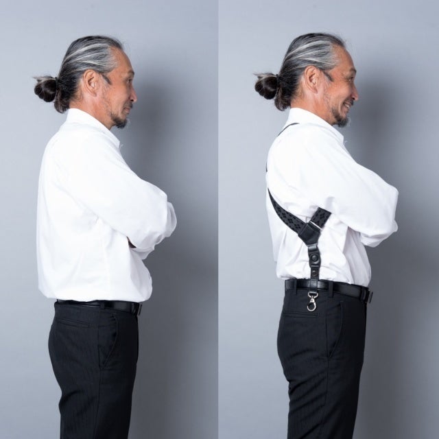 【Holt】はベルトを肩に通してからズボンのサイドに留める“ショルダーホルスター型”を採用しています。
