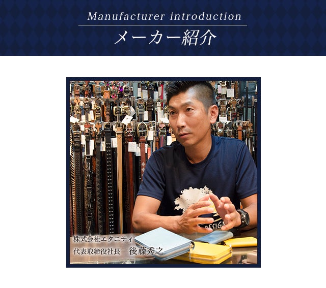 当社は、昭和35年の創業以来、長年にわたりレザー製品を中心にベルトや財布、鞄などを「企画・生産」して参りました。今回、ベルト製品の企画、生産の実績をかわれ、内田さんより、現在販売されているサスペンダーの改良、新しい試みについて相談を頂き、当社として今迄培ってきた技術力を活かし協力させて頂きたいと、今回のプロジェクトに協力させて頂きました。