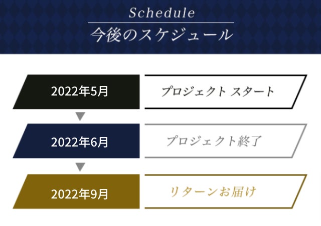 ※本文中に記載させていただいたスケジュールは、あくまでプロジェクト公開時点の予定です。応援購入の性質上、配送遅延のおそれがございます。原則として、配送遅延に伴う応援購入のキャンセルはできませんが、リターン配送予定月から6ヵ月を超えた場合には、希望者に限りキャンセルにて対応させていただきます。