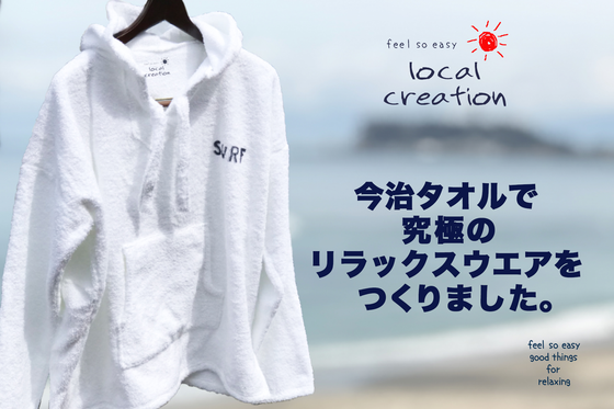 よそ行きの着飾る服ではなく、リラックスするための服。風呂上がりにフワッフワの極上タオルで身を包まれる、あの幸福感を味わえるウエア。サーフィンなど海のアクティビティ後のリラックスタイムに。そしてもちろん、家でくつろぐときのベストなリラクシングウエアとして。近くにちょっと出かけるときにも、そのまま行けちゃうグッドルックなデザイン。高品質タオルとして名高い “今治タオル” 素材を使った究極のリラックスウエアが完成しました!
