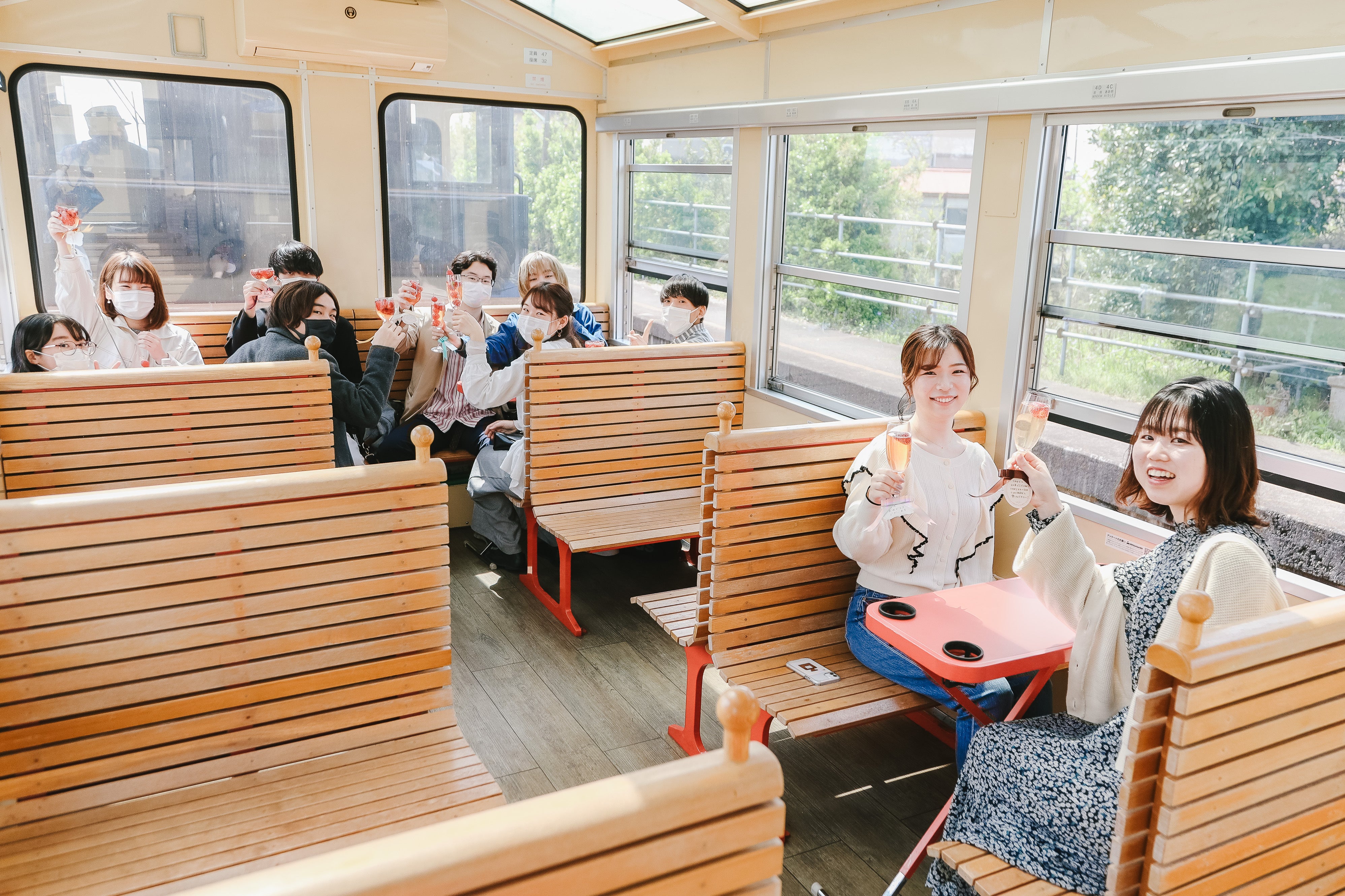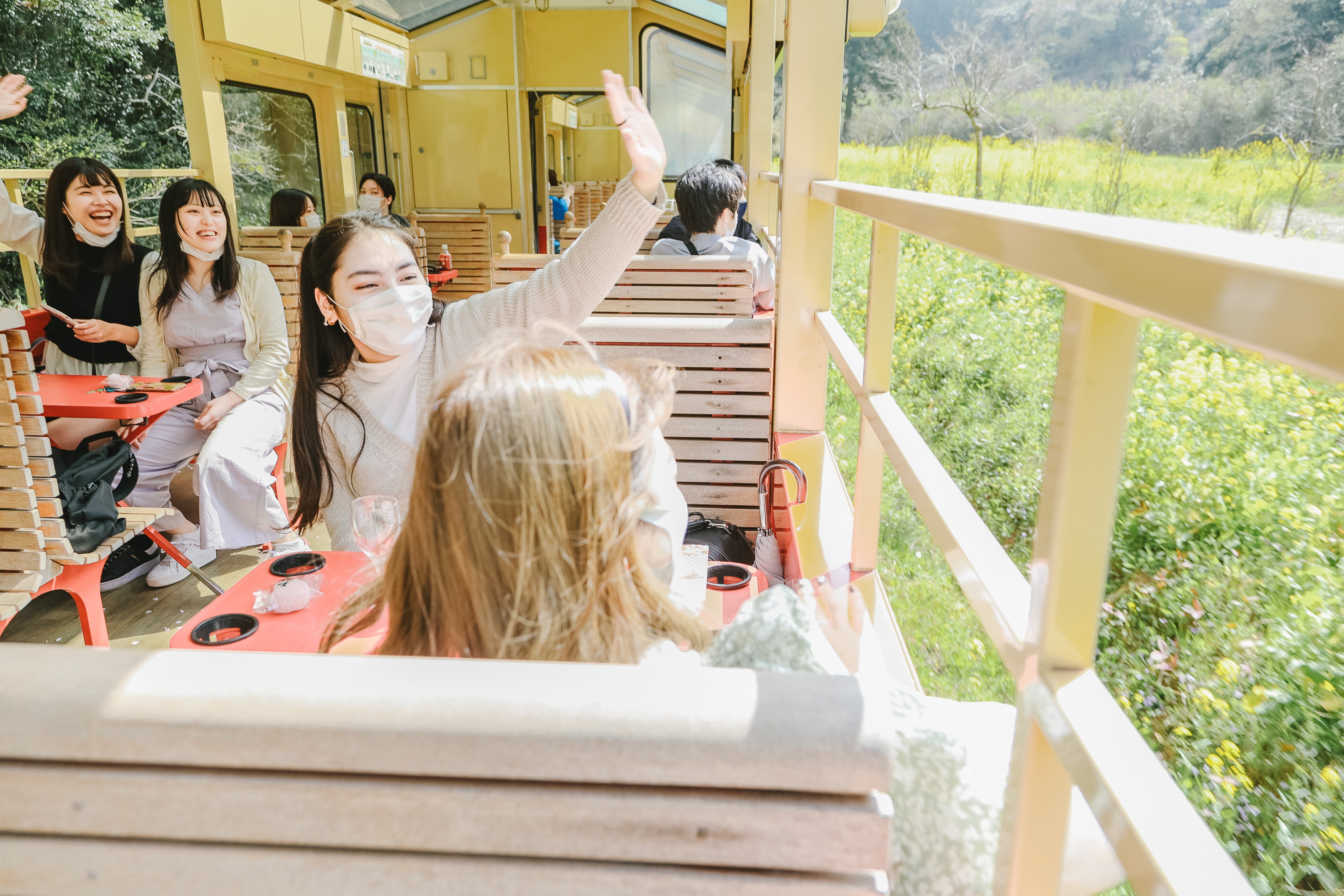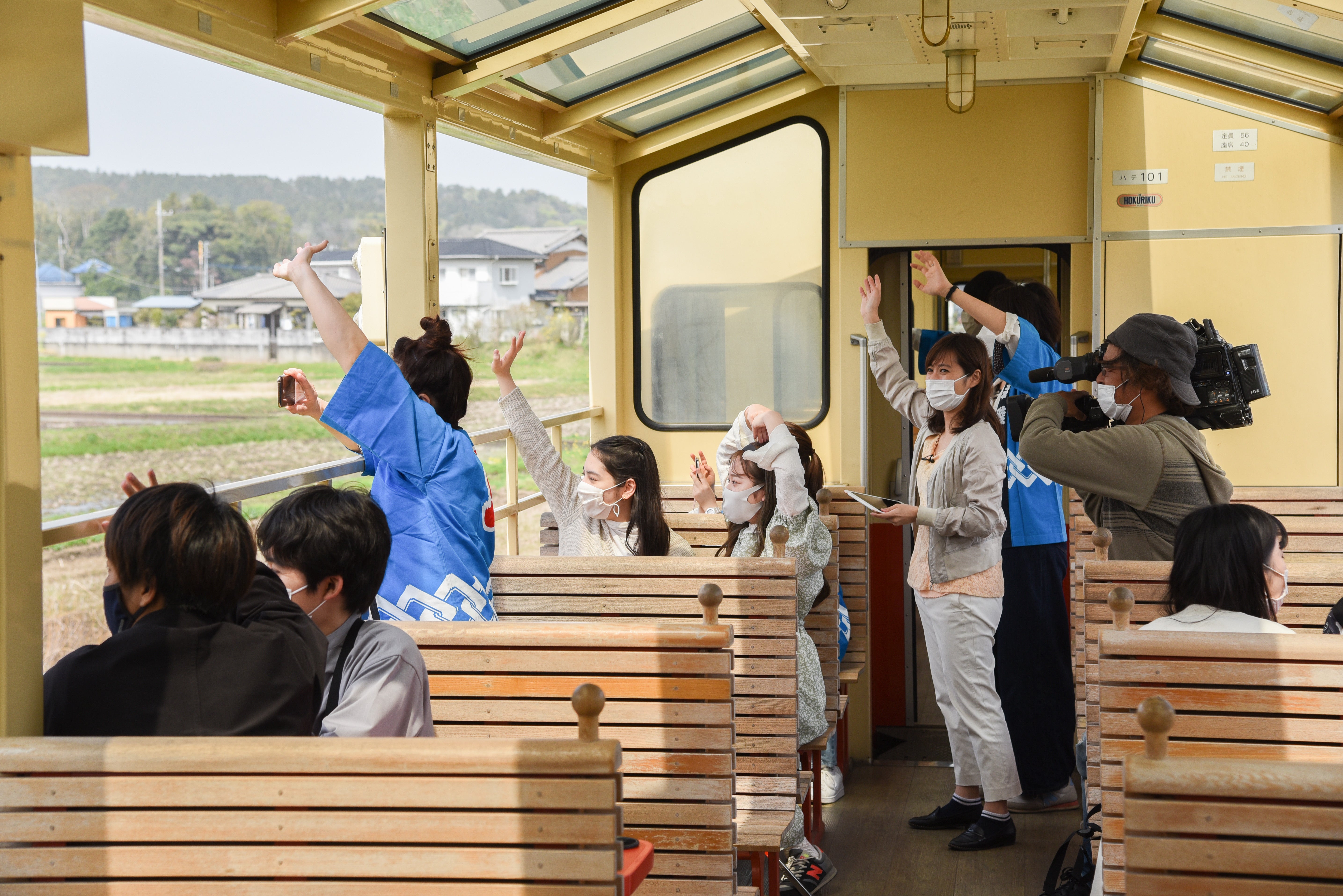 2021年は、約30名の新成人が乗車。満開の菜の花と桜が舞い散る春の市原を満喫し、各駅でお出迎え頂いた地元の方々と接しながら、20歳の若者たちが、地元の自然と人情に触れる機会をつくることが出来ました。