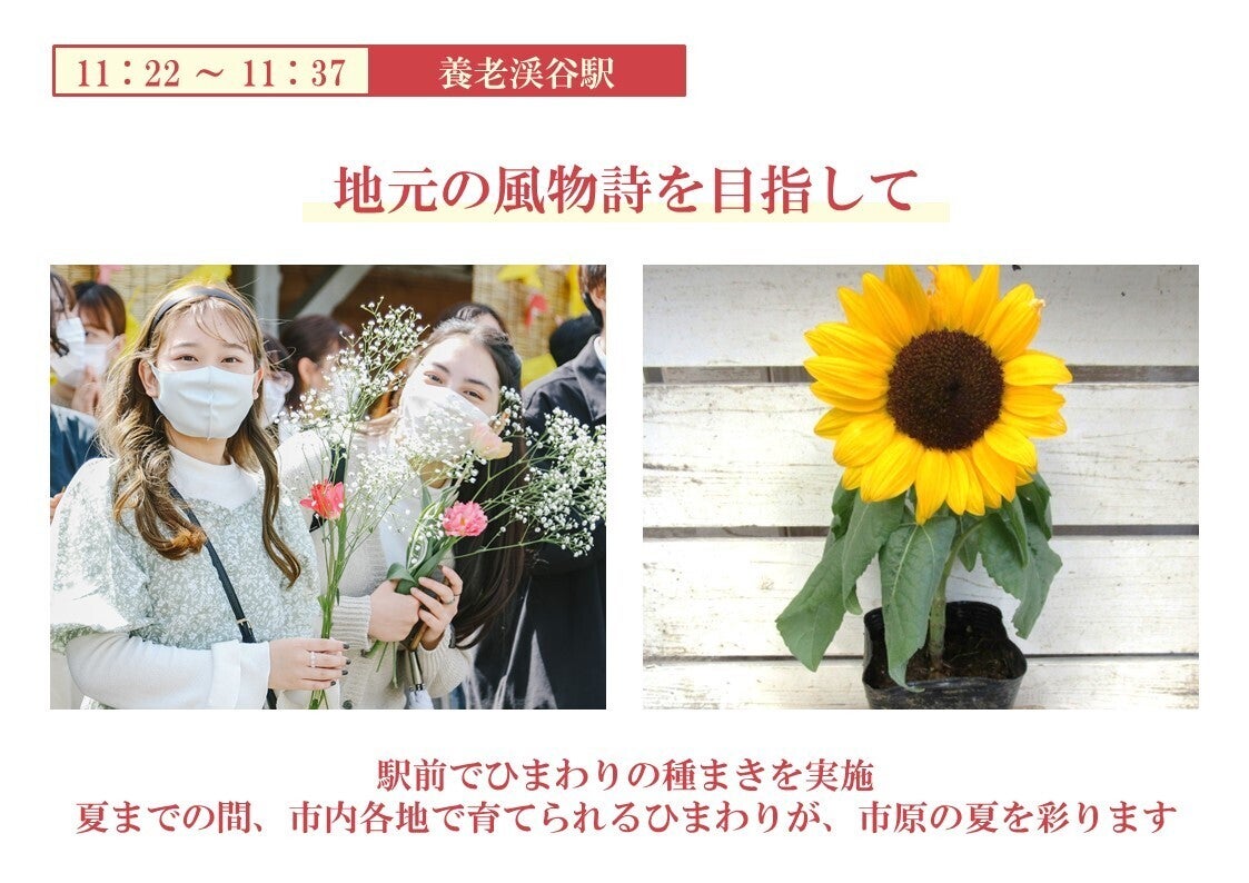 そしてはたちを迎える方に、コロナ禍の中で行事が全て縮小やキャンセルになる中で少しでもかけがえのない時間を大切に過ごしてほしいと思っています。市原で過ごす同じ一日だけど充実した日を過ごしてほしい。小湊鉄道と菜の花、桜と共にお祝いの場を作ることで、これからの市原の未来の担い手たちとワクワクしたいんです。