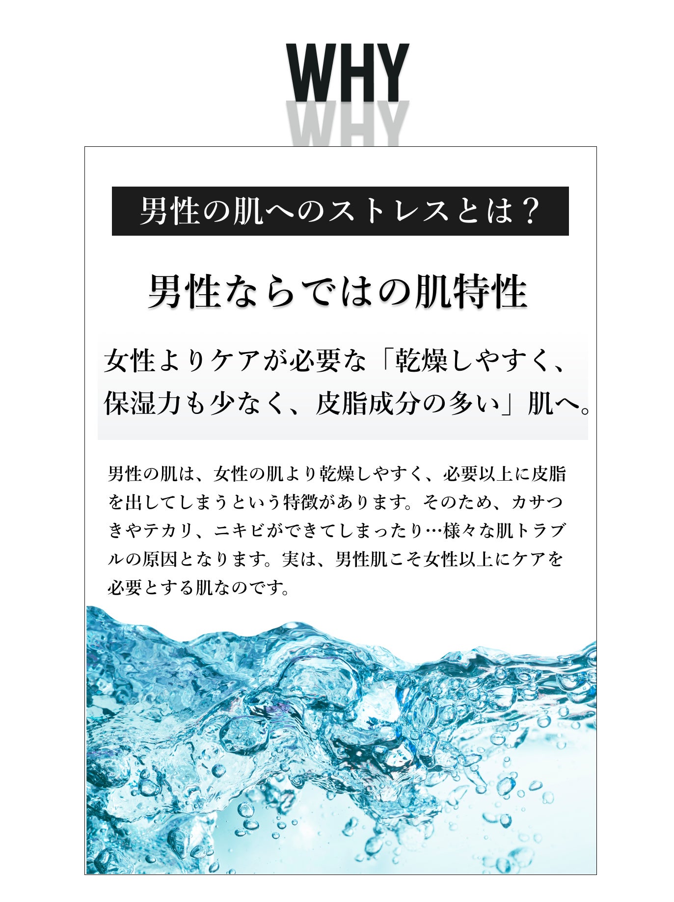 そして、そもそも本来男性の肌は女性よりもケアが必要。