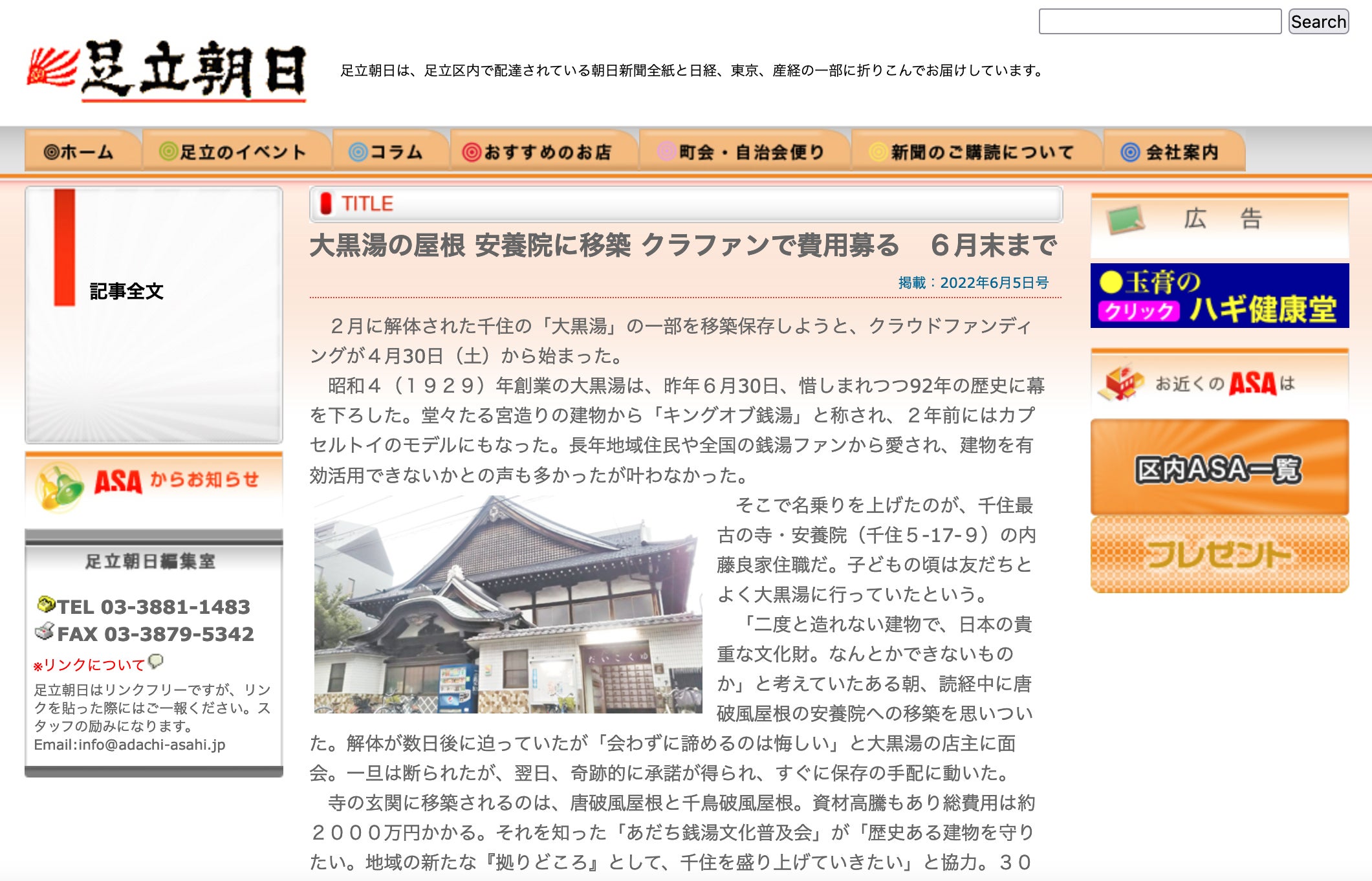 このプロジェクトが足立朝日新聞2022年6月5日号に掲載されました!ありがとうございます!!ウェブ記事はコチラからご覧いただけます!