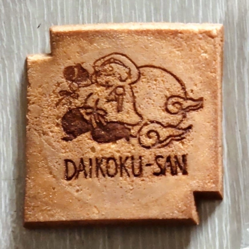 今回のプロジェクトで誕生したオリジナルキャラクター、“DAIKOKU SAN”のデザインが焼印された瓦せんべいが完成しました!