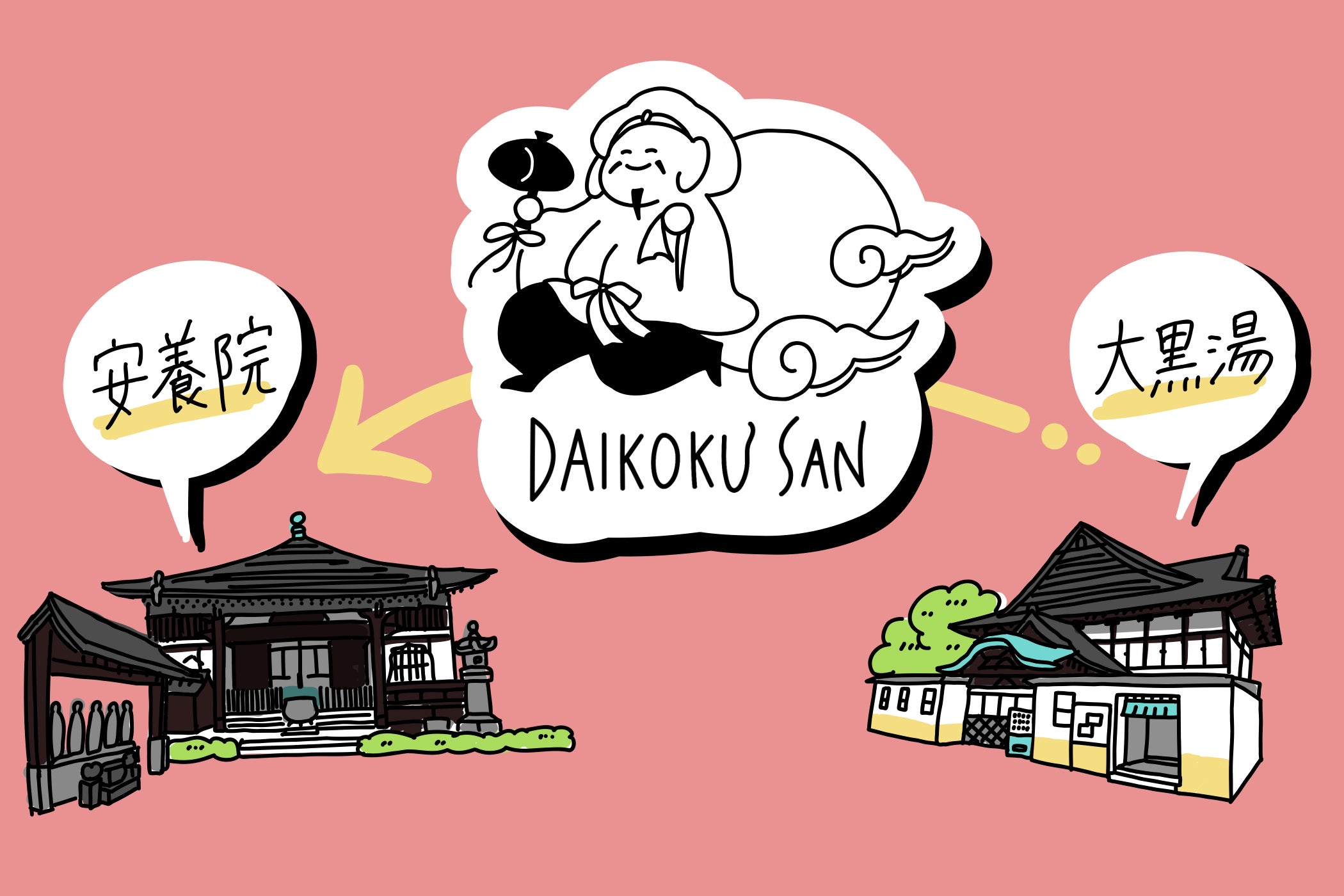 「大黒湯の屋根にいらした大黒様が、ウキウキわくわくとお引越ししているイメージ」