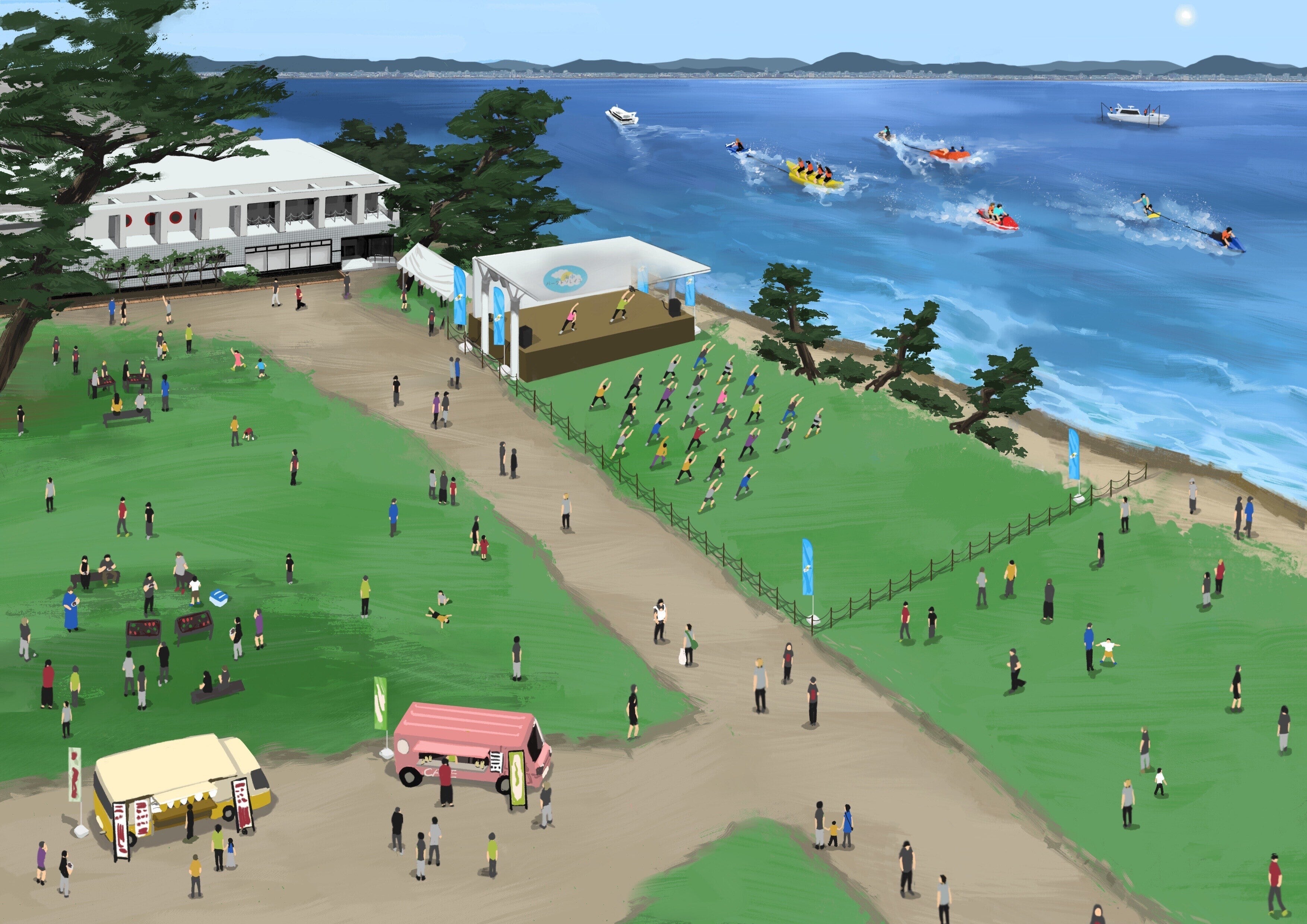 この国内初となるシーサイドの野外フィットネス会場で