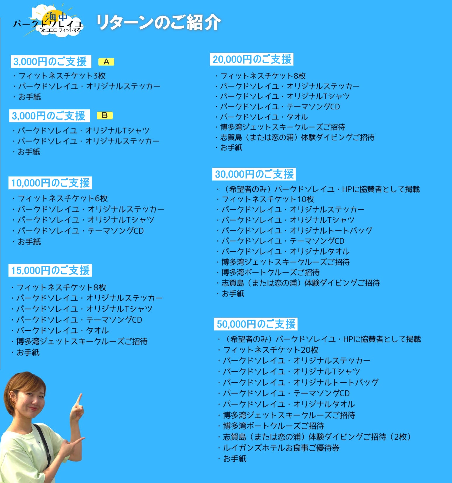 本リターンでは海中パークドソレイユの関連グッズやフィットネスチケット、