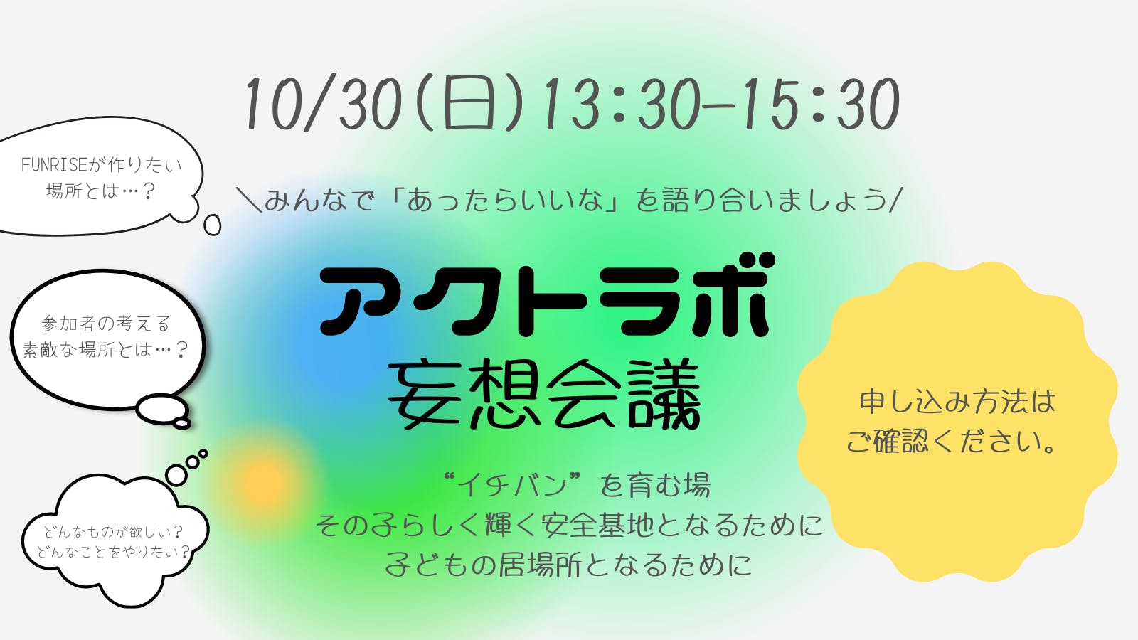 ・日時:10/30(日)13:30~15:30(終了後交流の時間あります)
