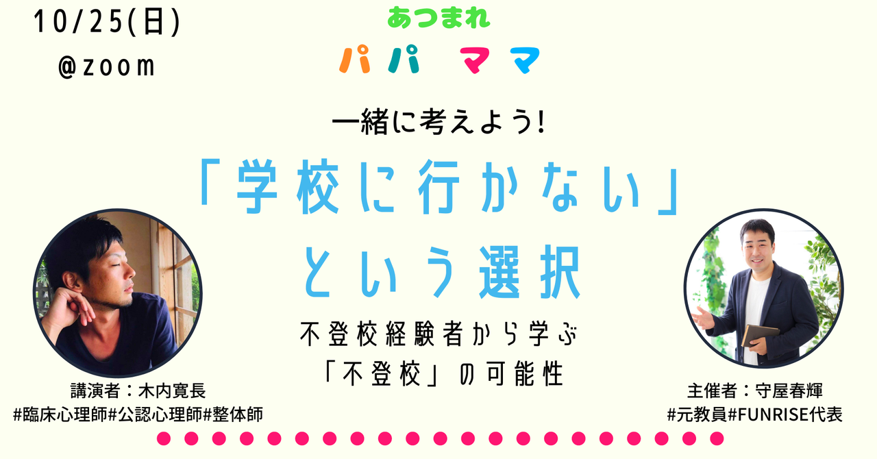 2020年10月 あつまれパパ・ママ 一緒に考えよう「学校に行かない」という選択 不登校経験者から学ぶ「不登校」の可能性