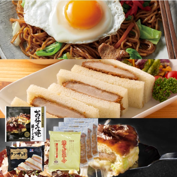 ・内容品:焼そば革命(250g×3食)1袋、カツサンド3切×1袋、お好み焼 豚チーズ玉(1食)×1袋