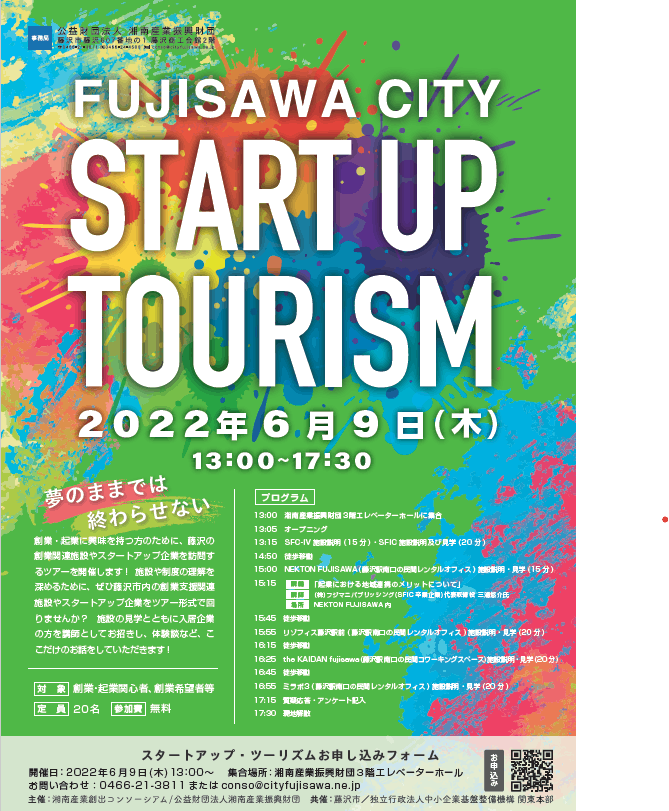 6月9日(木)に湘南新産業創出コンソーシアム/公益財団法人湘南産業振興財団が主催、藤沢市/独立行政法人中小企業基盤整備機構が共催しおこなわれる「スタートアップ・ツーリズム」というイベントでミラボ3が紹介されます!
