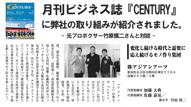 弊社の取り組みが評価され、月間ビジネス誌『CENTURY』2020年に掲載されました。元プロボクサー竹原慎二さんとビジネス対談させてい頂きました。
