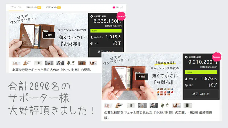 で約1500名様のサポーター様より1500万円の売り上げを記録し現在でも大変ご好評頂いております。