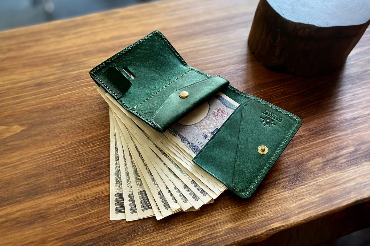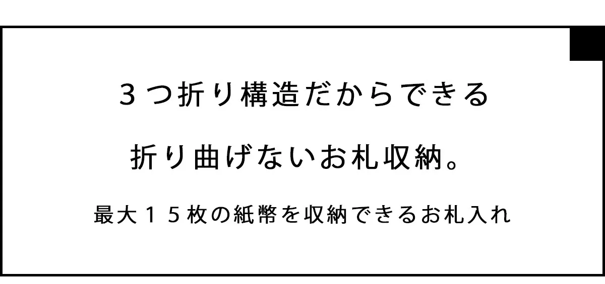 お財布を3つ折り構造にすることで、お札を折り曲げずに収納できるようになりました。