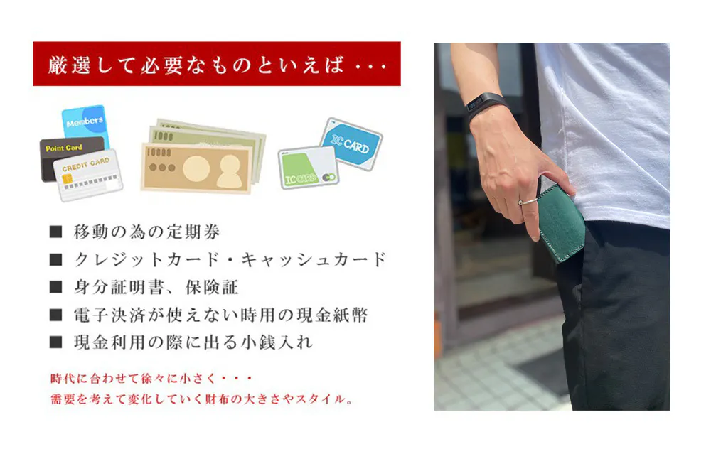 今、日本でもモバイル電子決済の導入が進められ、国策事業と相まってキャッシュレス決済が普及し、小さい財布を持つ方が急速に増えております。