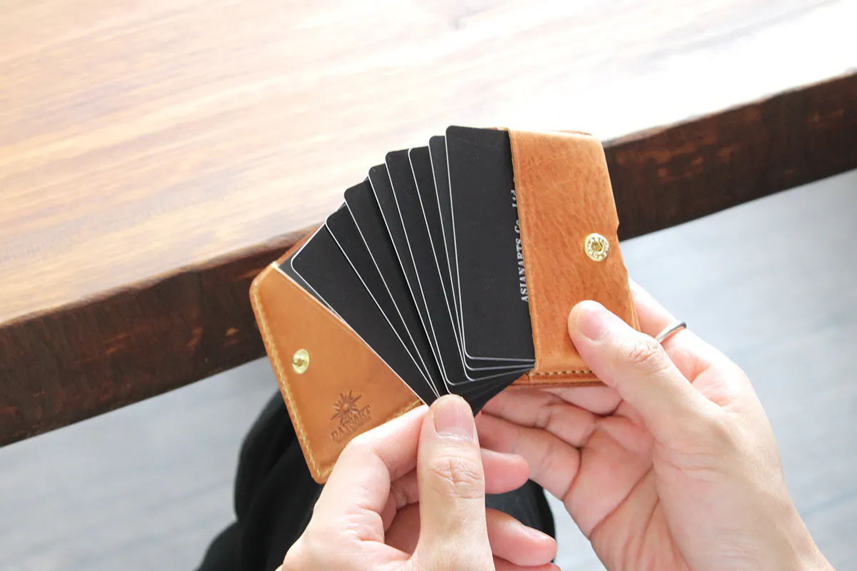 この構造にすることで、小さくても多くのカードを収納できるようになりました。