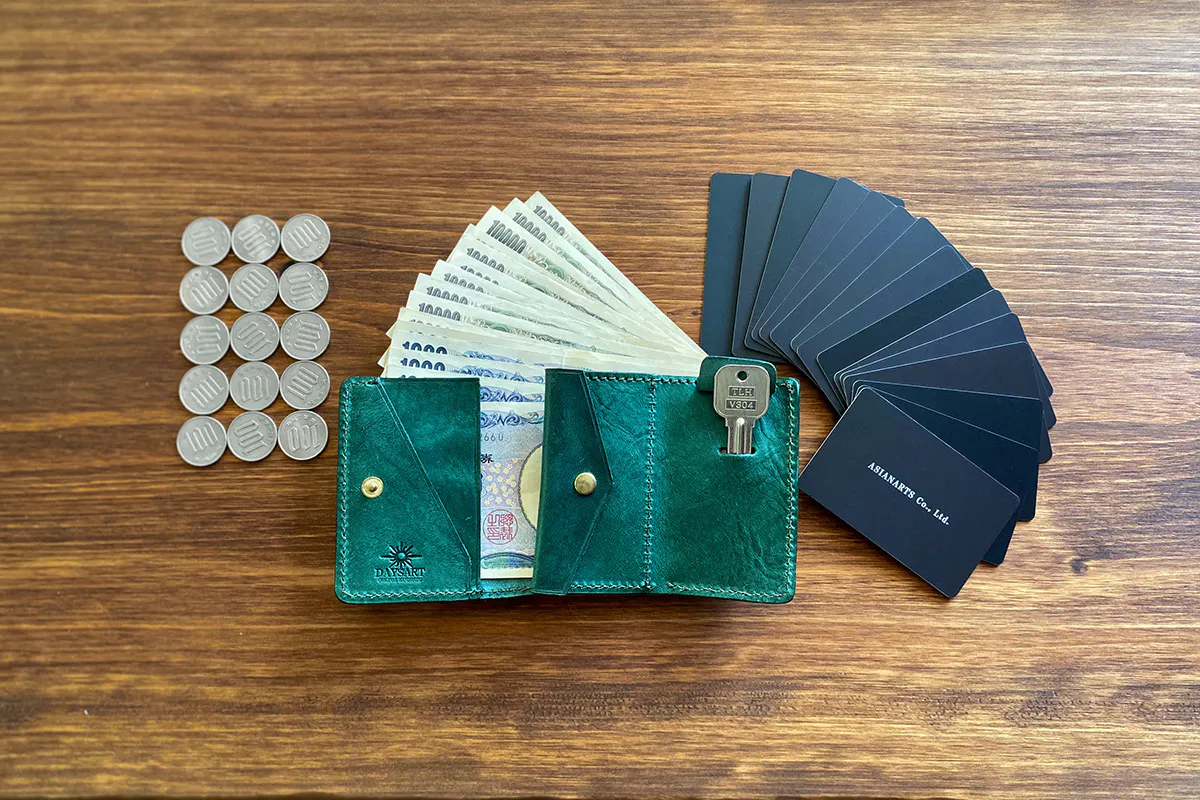 キャッシュレスアイテムは現金収納が省かれカード収納メインのアイテムが多いのですが今回のDAYSART「小さい財布」は “必要な機能を一切省かず小さくしただけ”
