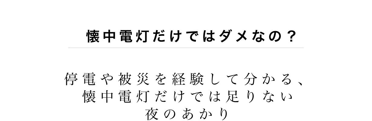 人ひとりが持ち運べる荷物は案外少ないものです。実際の避難では荷物のトリアージという持っていけるものの選別が必要になります。人が持ち運べる重さとサイズは限られているので水や食料など命に関わる物資を優先する必要があり、重くかさばるランタン製品などは到底持っていけません。