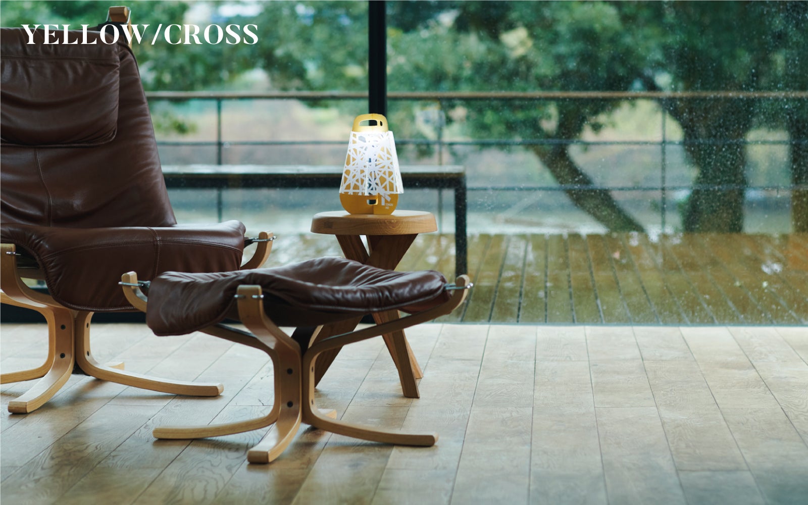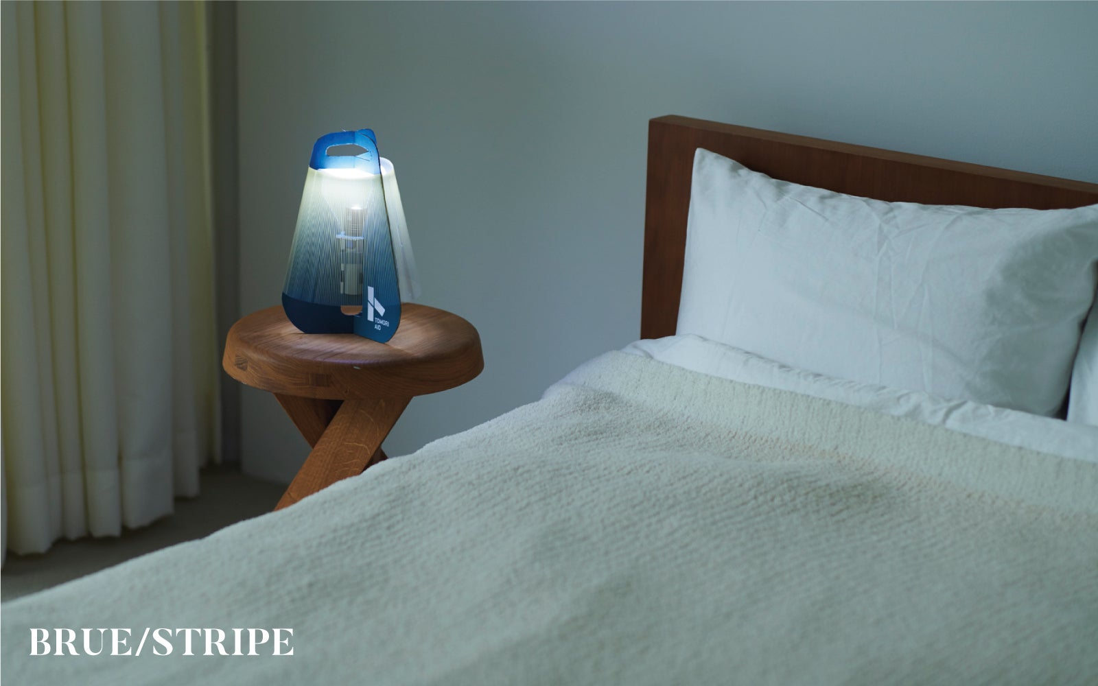 本体の素材は軽く曲げに強い段ボール、カバーは強度と光の透過が美しいポリプロピレンです。本体カラーはイエロー/ブルー/グレーの3種類とカバーもそれぞれのカラーに合わせたデザインとなっています。それぞれ光り方も違うので日常の様々なシーンやインテリアに合うようデザインしました。