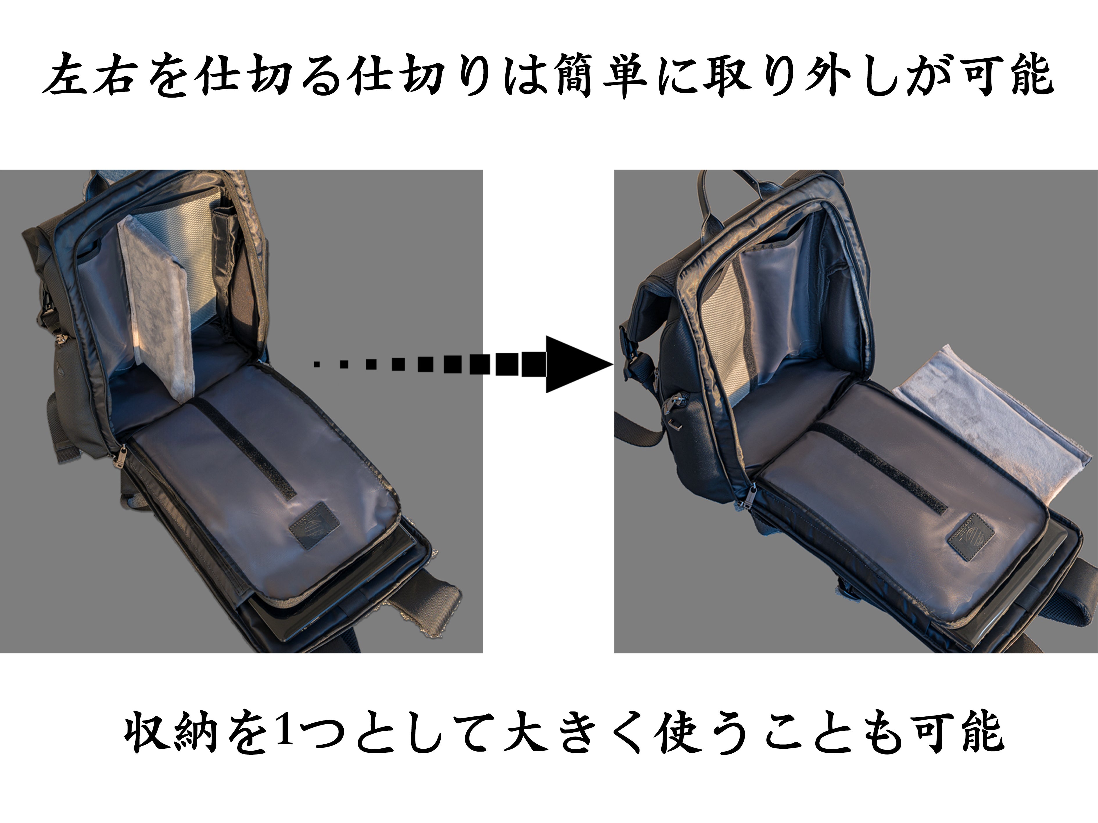 大きな荷物を持ち運ぶ時は、仕切りを外して使うこともできます。