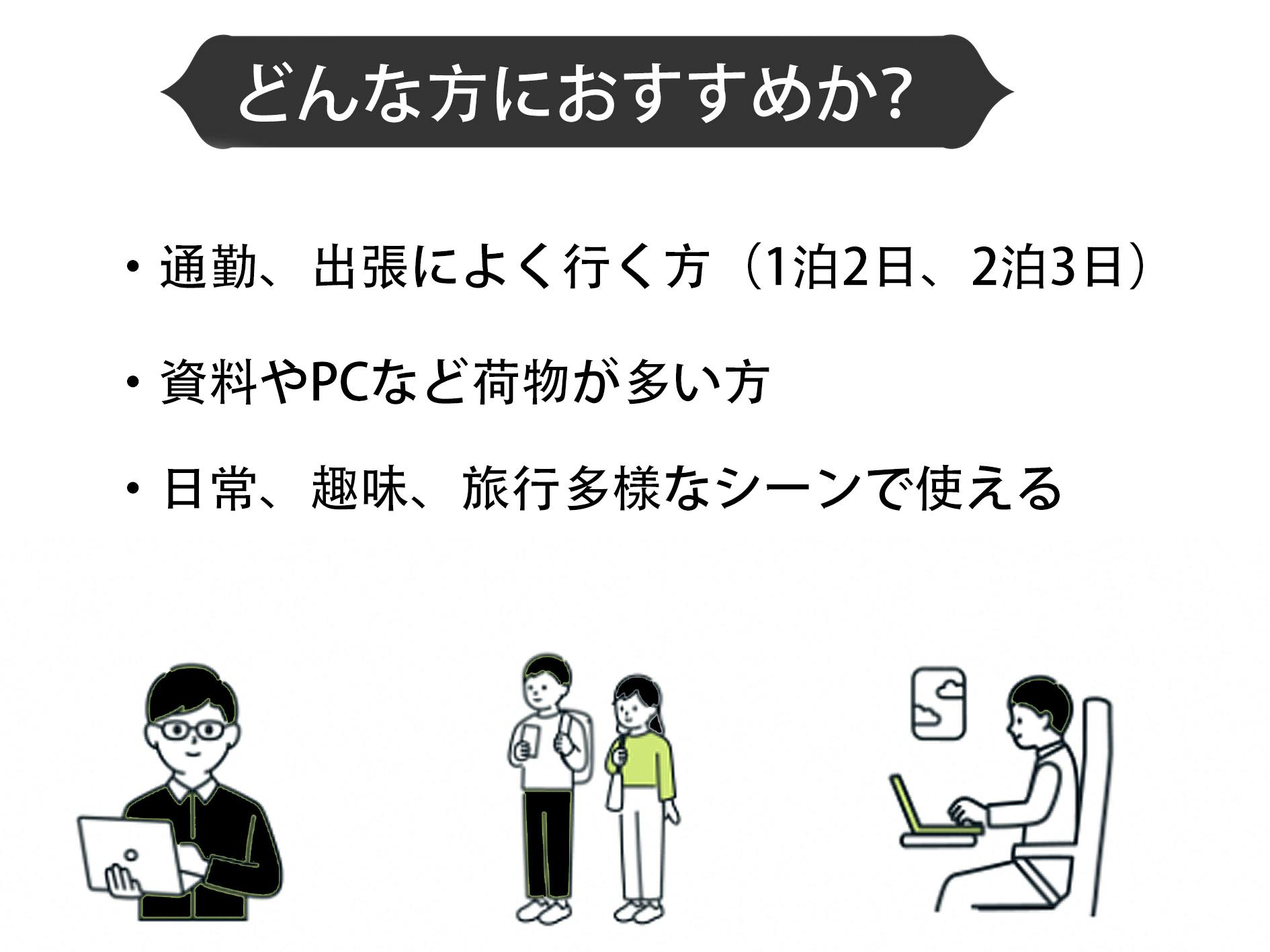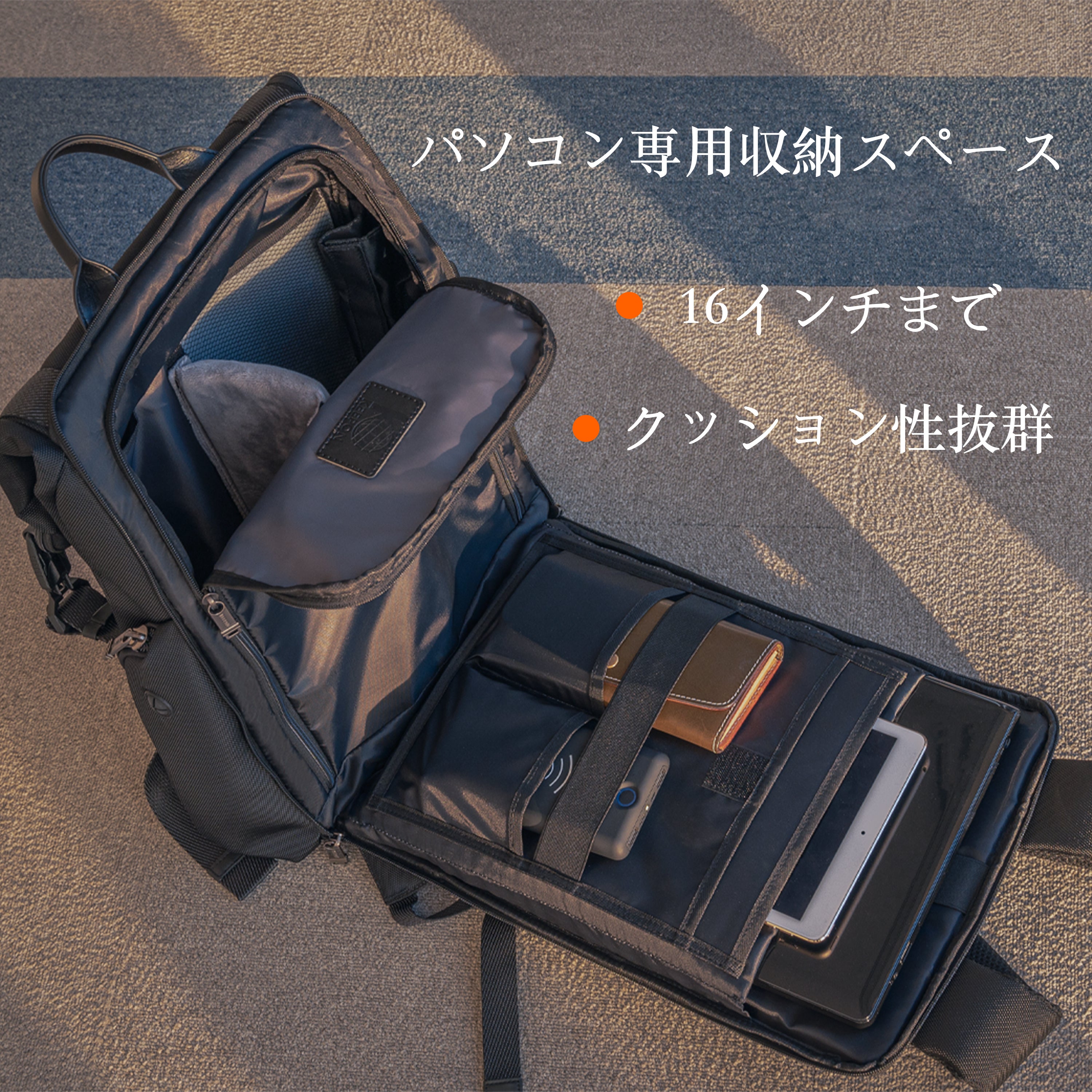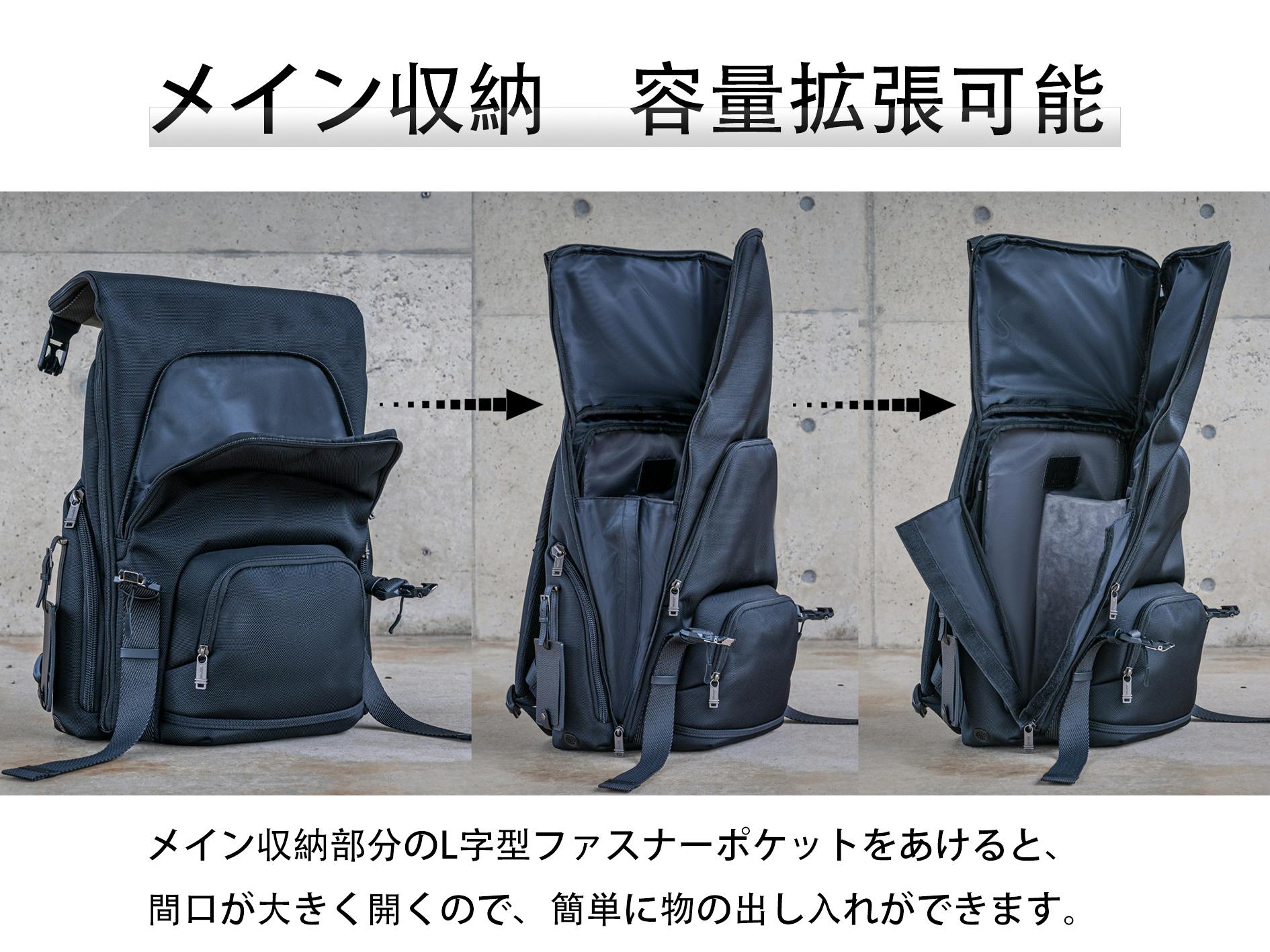 ・本商品の一押しポイント:収納サイズが変えられ、どこからでも取り出しやすいバックパック