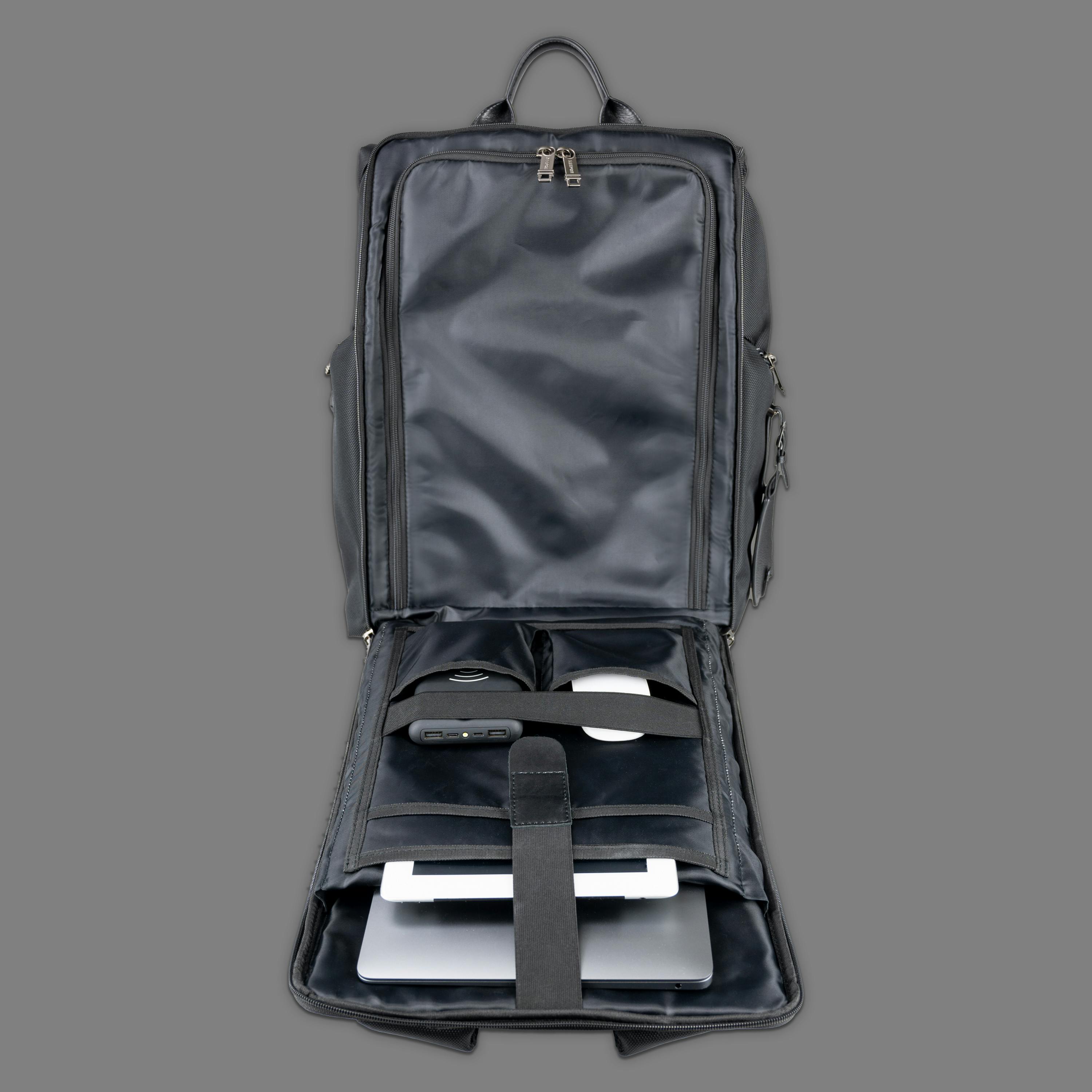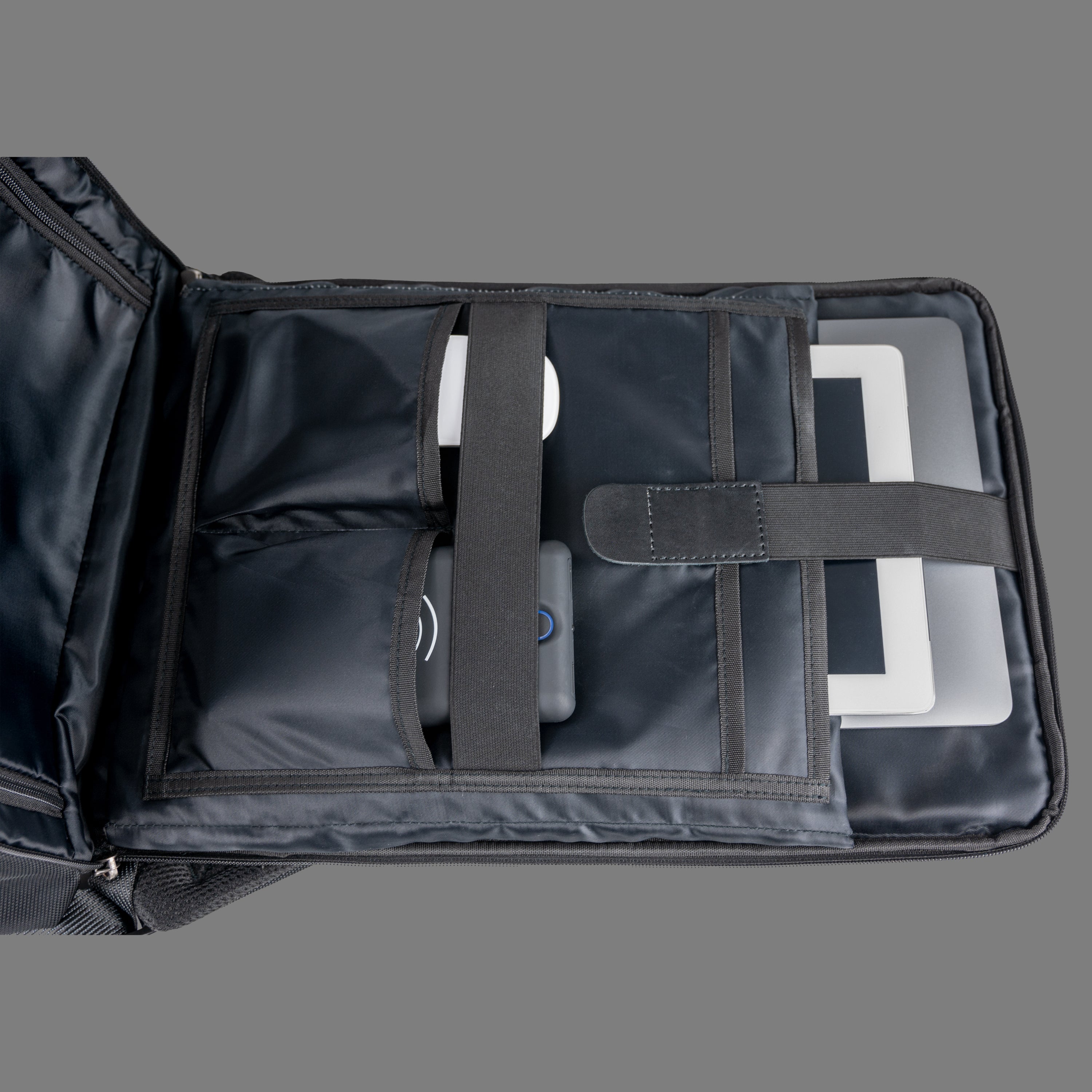 パソコン専用収納スペース内には、PC専用ポケット以外にiPad専用ポケット、マウス専用ポケット、持ち運ぶ充電器専用ポケットもあります。
