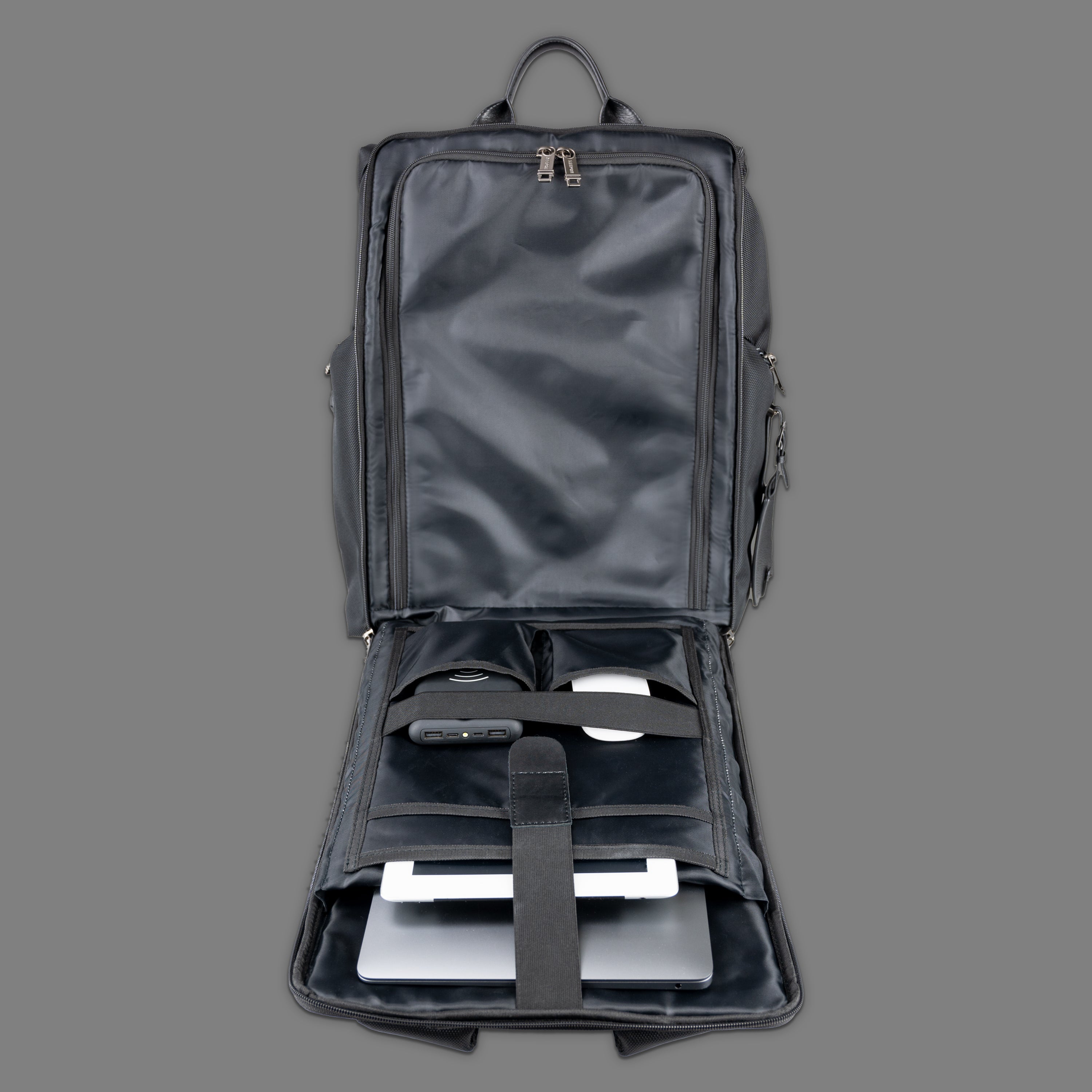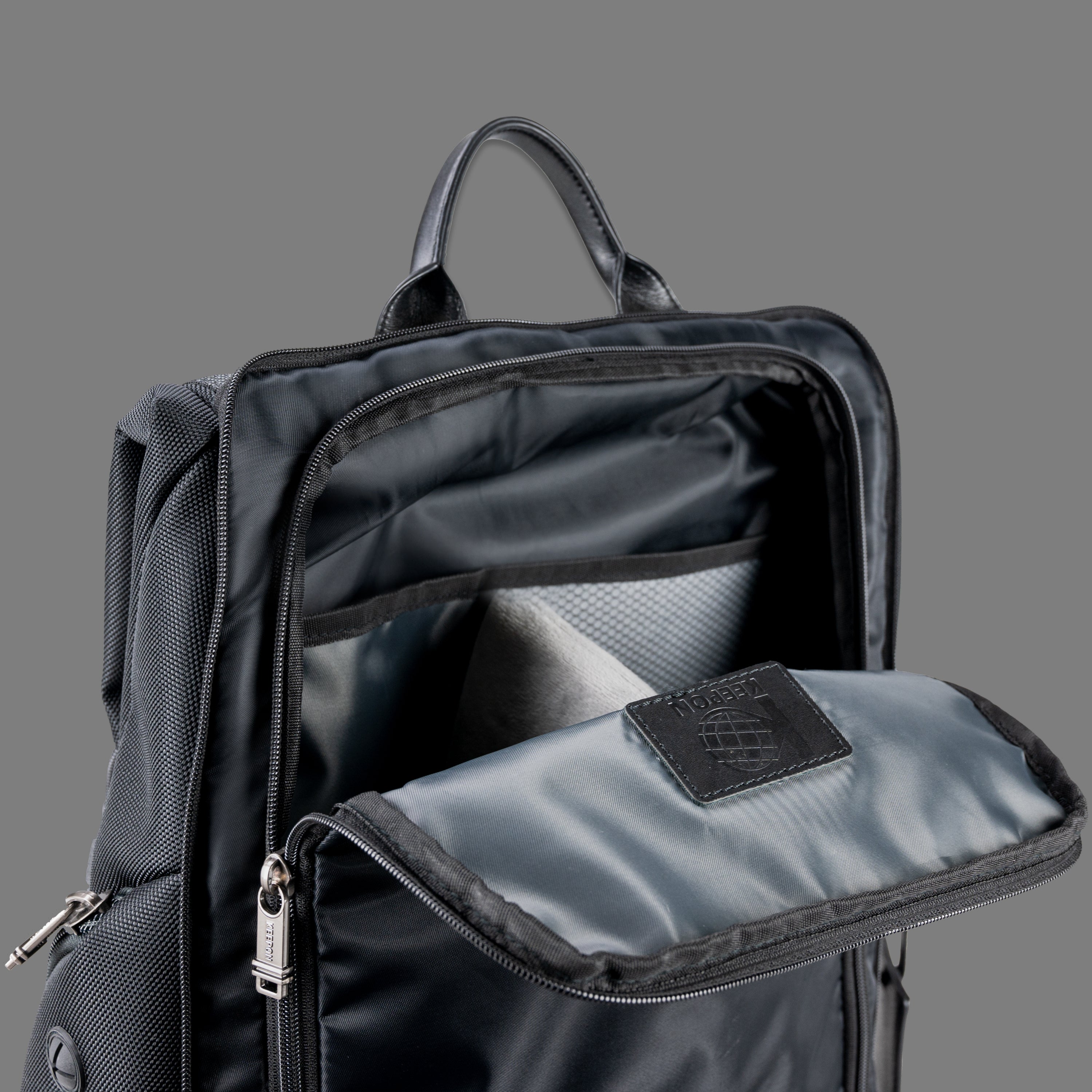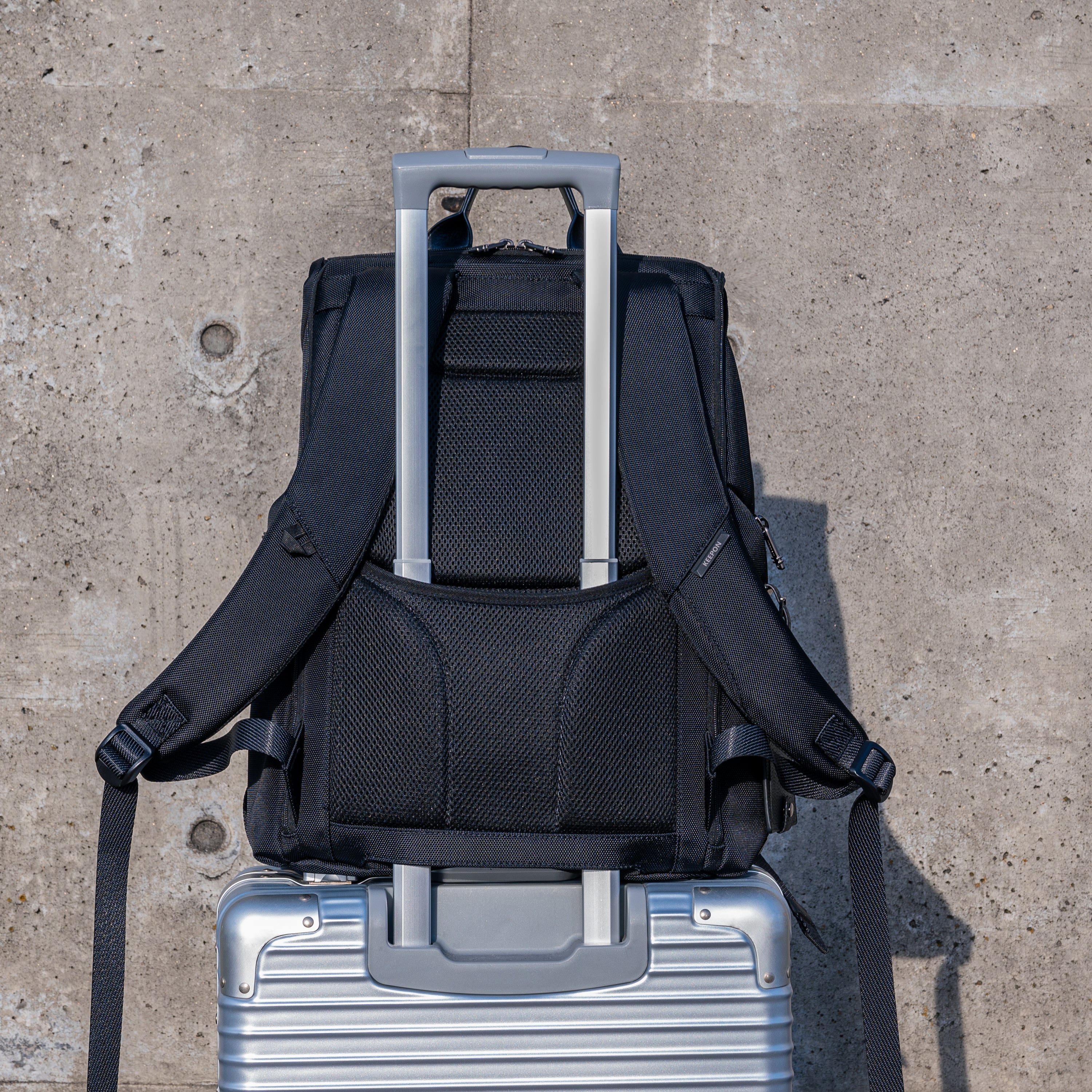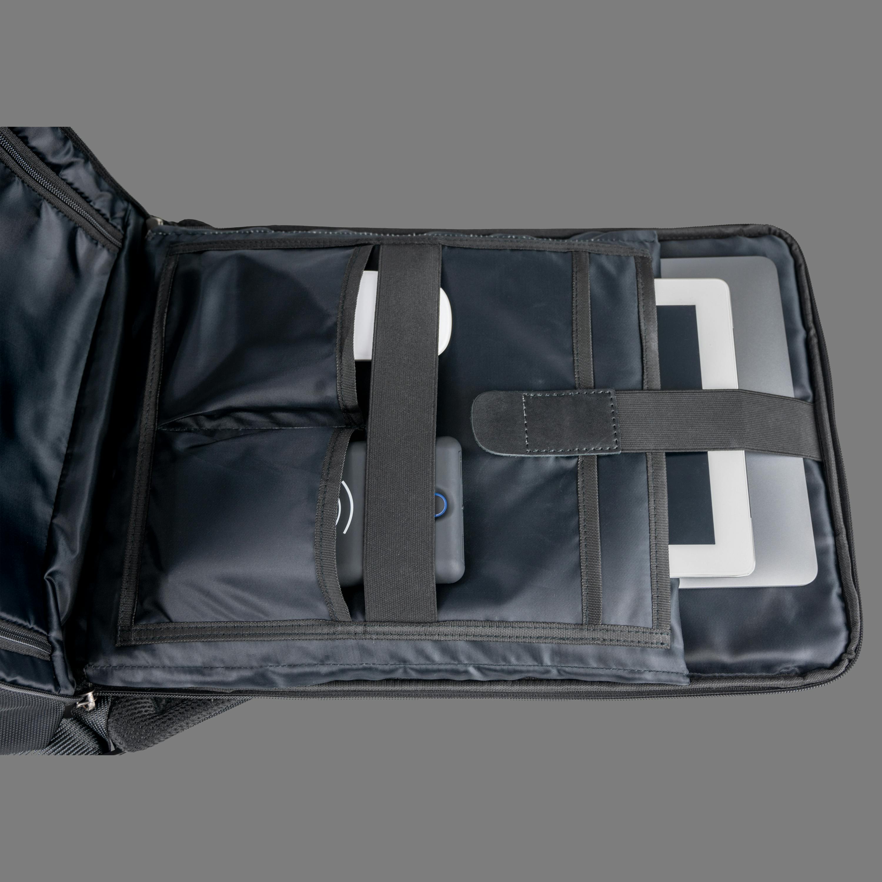 PC収納ポケットは自分の好きな角度で開けられるように作っている為、空港での手荷物検査の際は、電子機器などを取り出さなくても、セキュリティチェックにすばやく対応することができます。