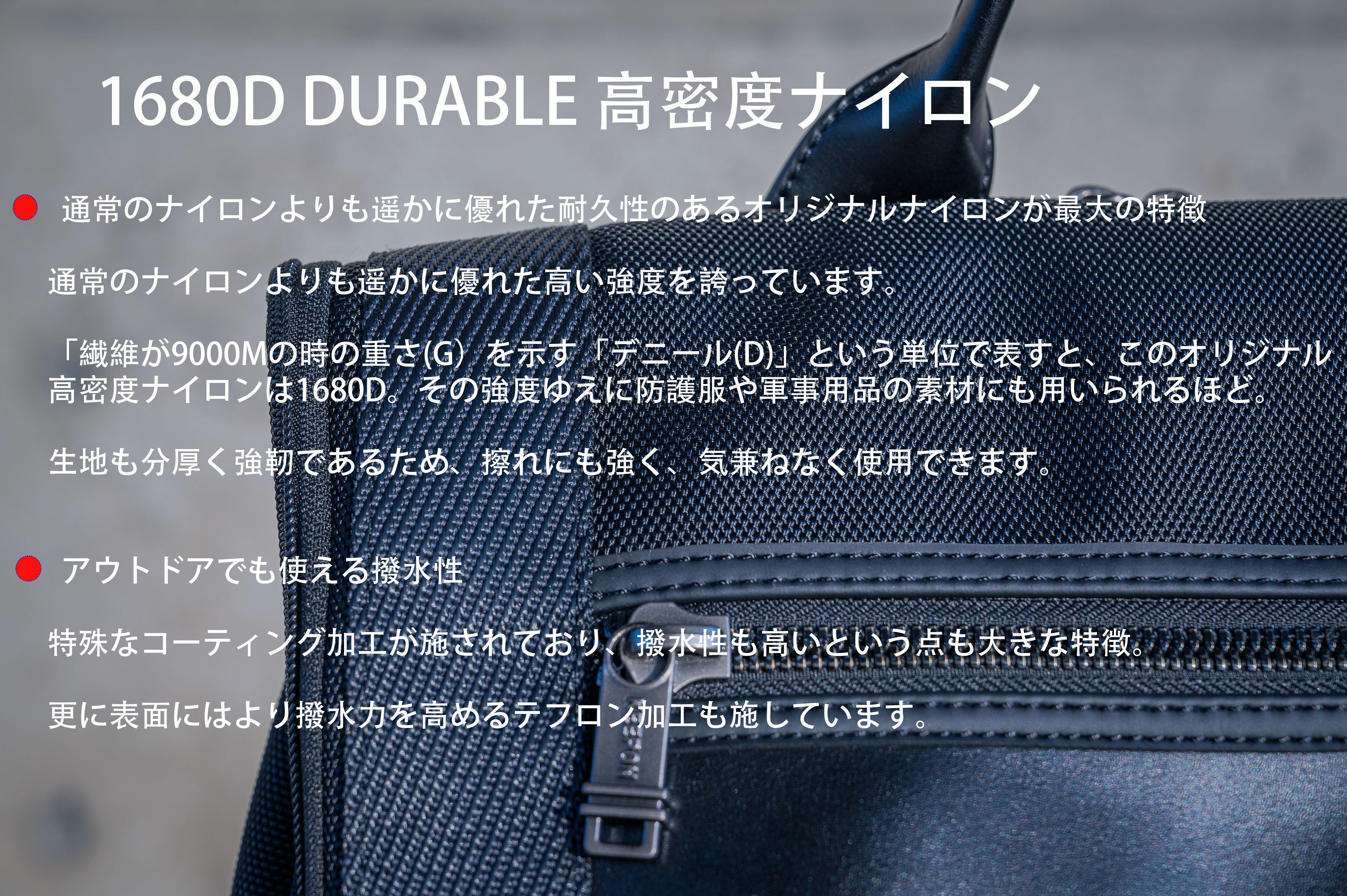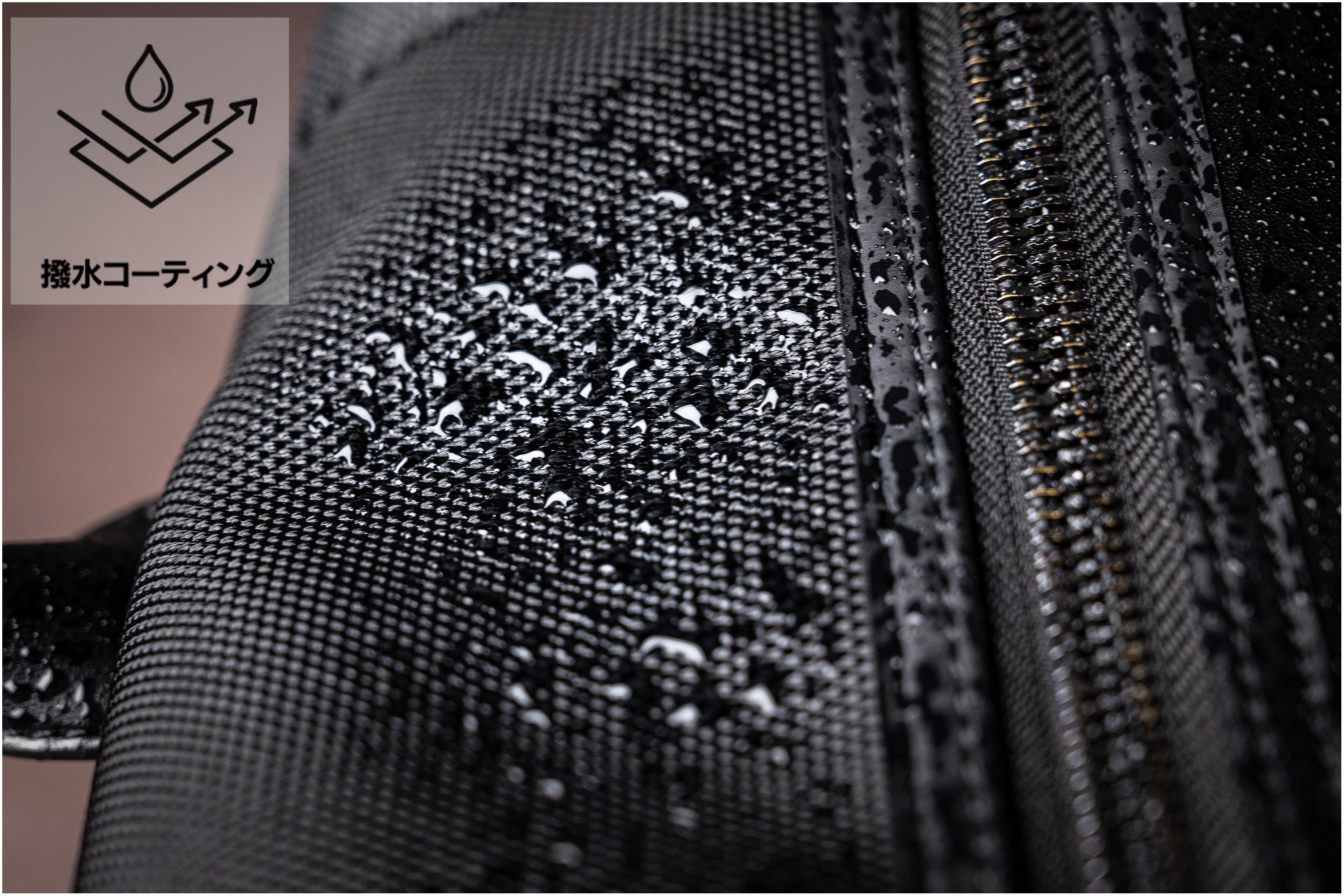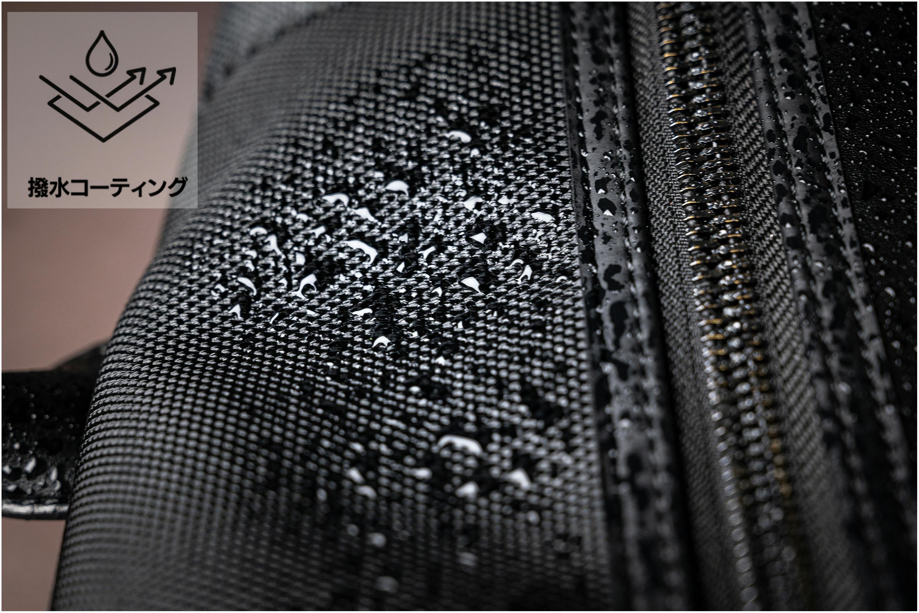 日本は雨や湿度が高い天気が多いため、バックパックの外側の生地にダブル高密度1680Dナイロンとレザーを採用しており、優れた撥水があります。