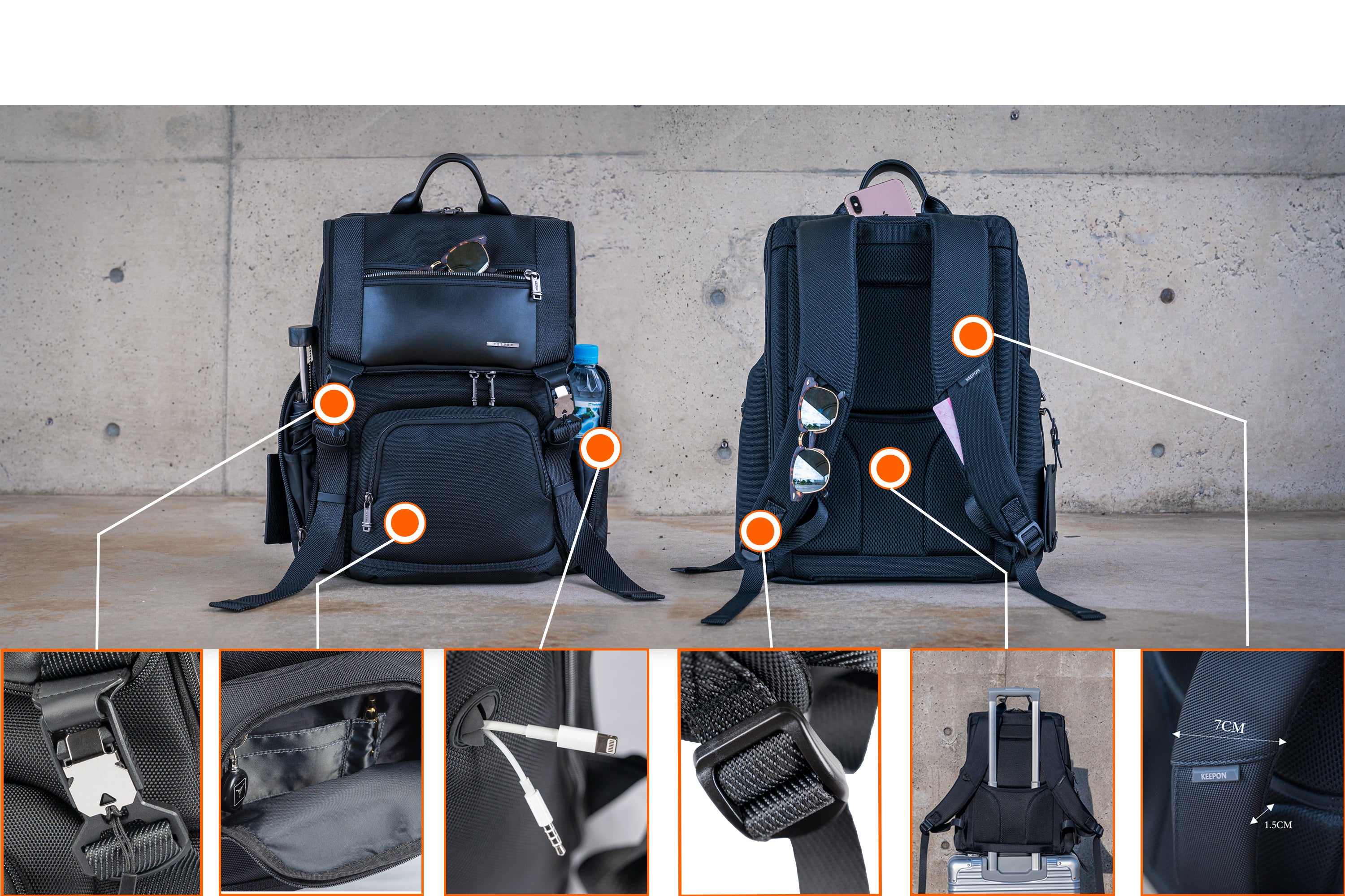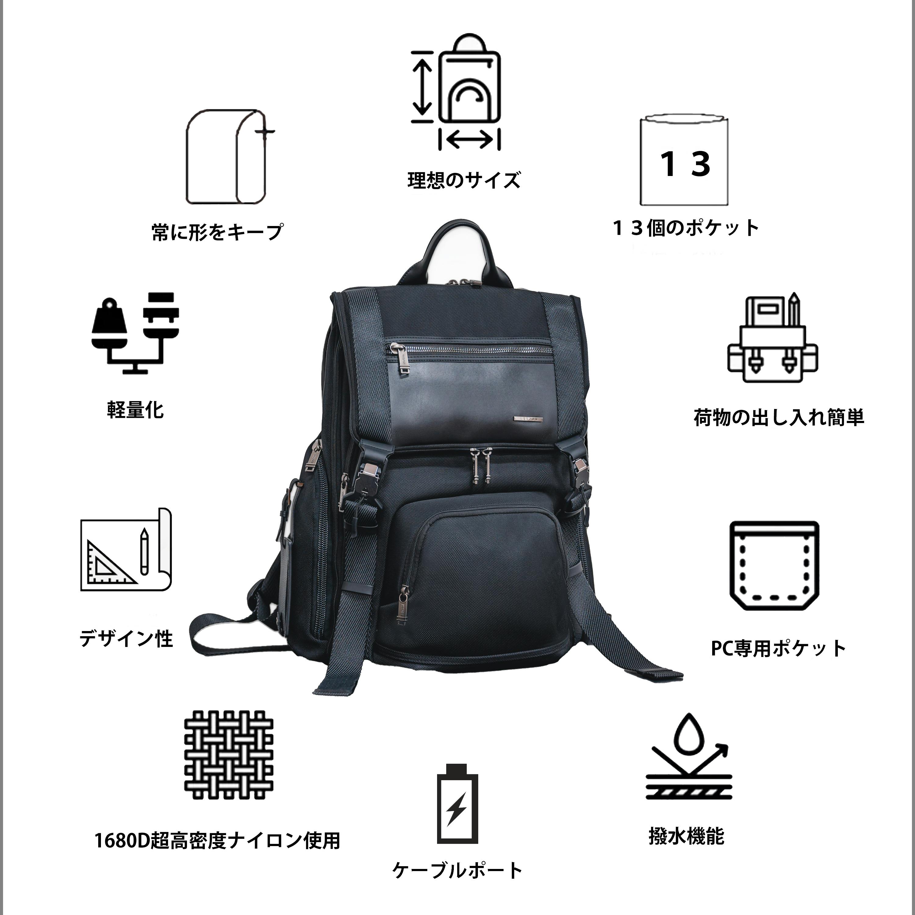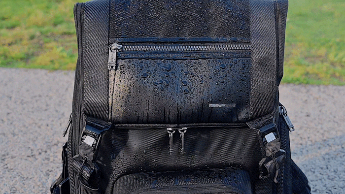 日本は雨や湿度が高い天気が多いため、バックパックの外側の生地にダブル高密度1680Dナイロンとレザーを採用しており、優れた撥水があります。