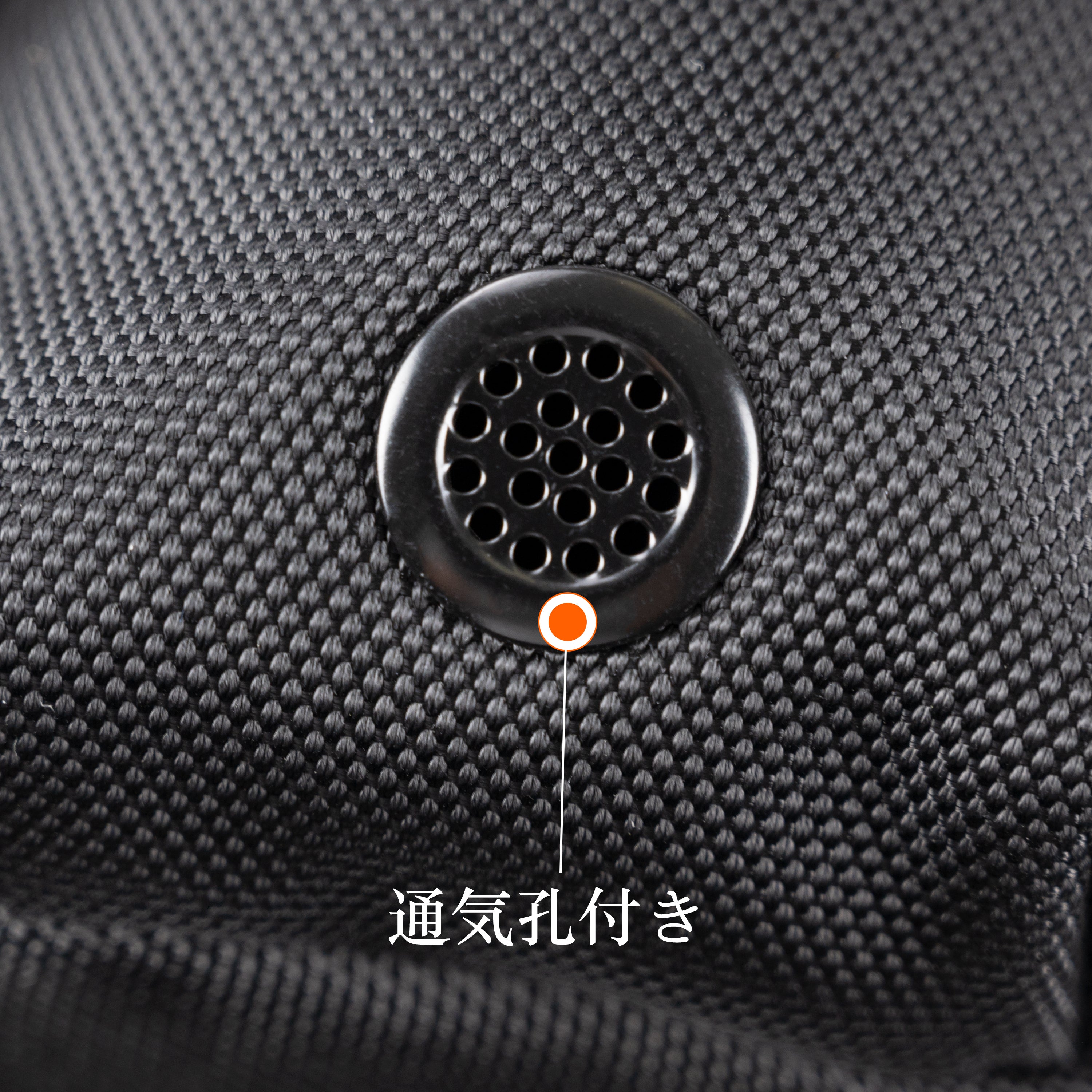 撥水ポケット下部に通気孔があり、水滴が乾燥しやすい設計にもなっています。
