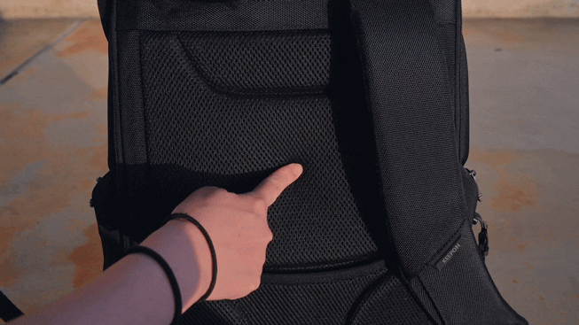 バックパックの背面側には16インチまでのサイズが入るPC用の収納スペースがあります。