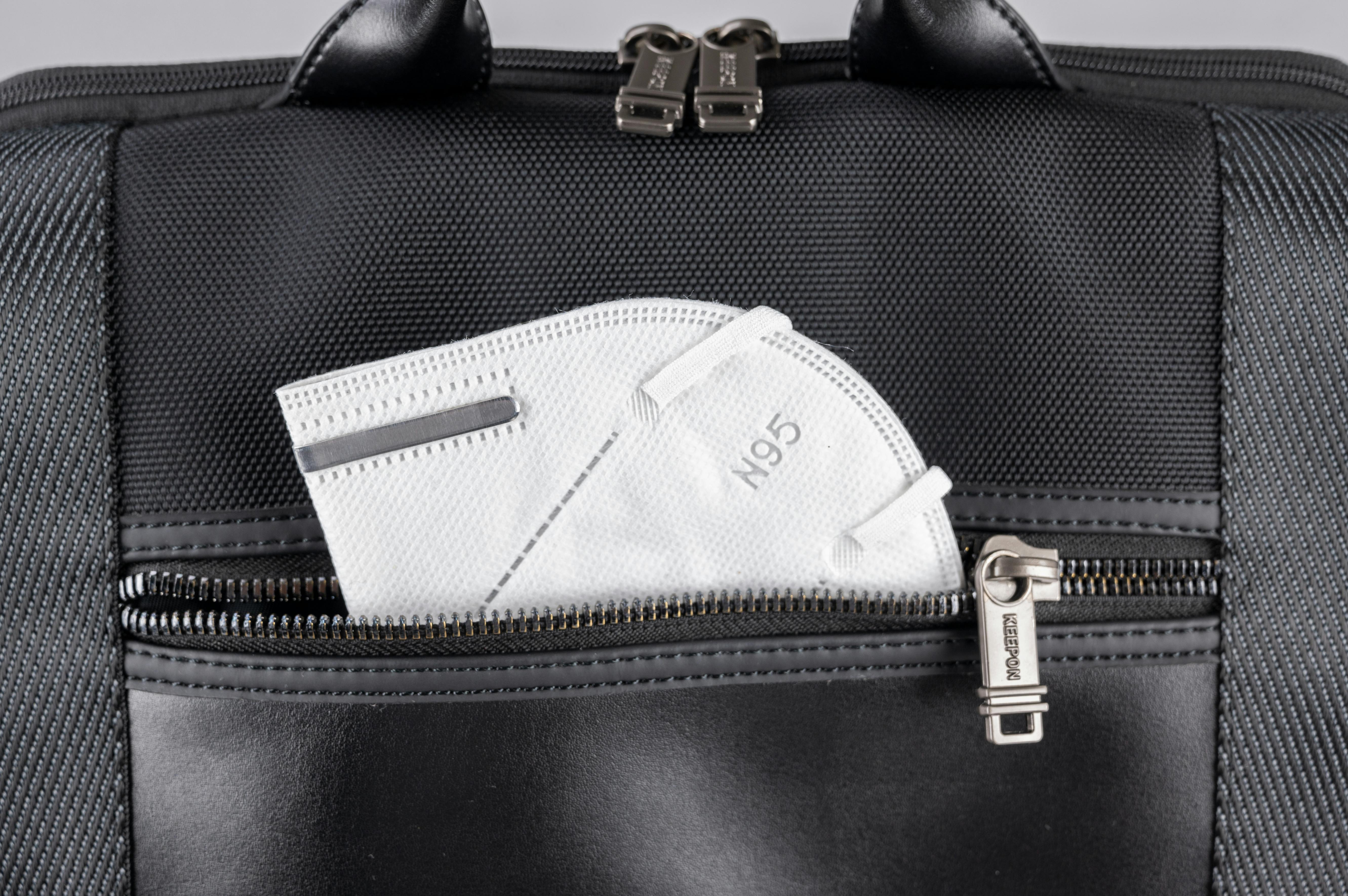 正面上部にもポケットがあり、マスクやパスポートなどを収納することができます。