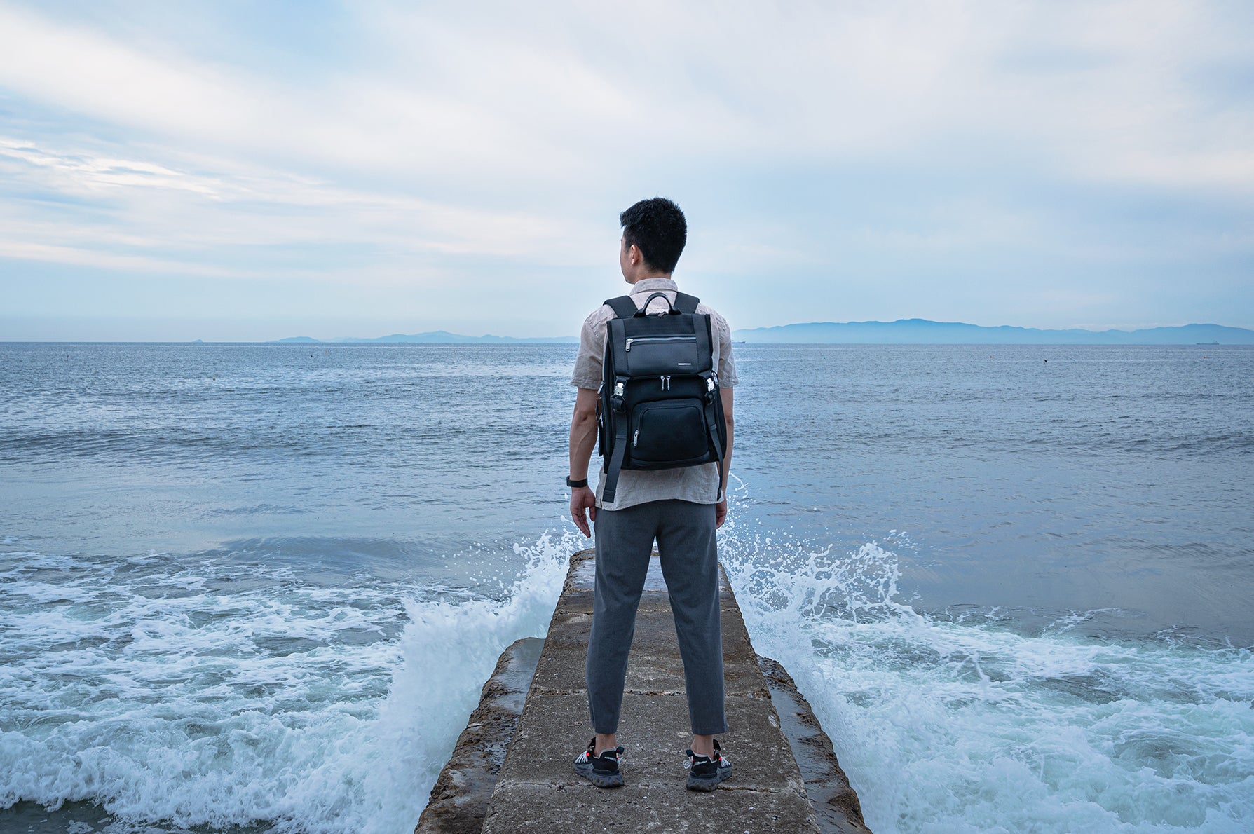 こうしたバックパックの課題に対して、「持ち運ぶ荷物の量と種類の多さによって収納サイズが変えられ、どこからでも取り出しやすいと同時に、撥水・高機能・耐久性に優れ、多くの場面に適応できるバックパックは作れないか?」という疑問から私達のバックパックの製作は開始されました。