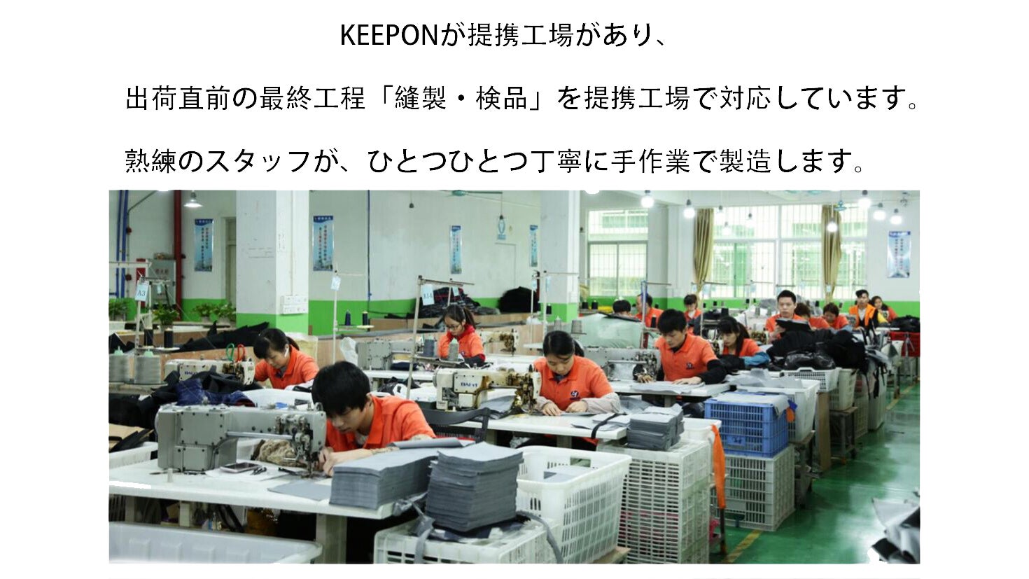 KEEPONという名前は、起業者が品質、機能性、デザイン性の3つの要素に対して妥協しないという強い意志のもと付けられました。KEEPONは鞄のOEM製造を中心にメンズ、ビジネス、トラベルに特化した鞄製品をこれから引き続き開発して行きたいと思います。