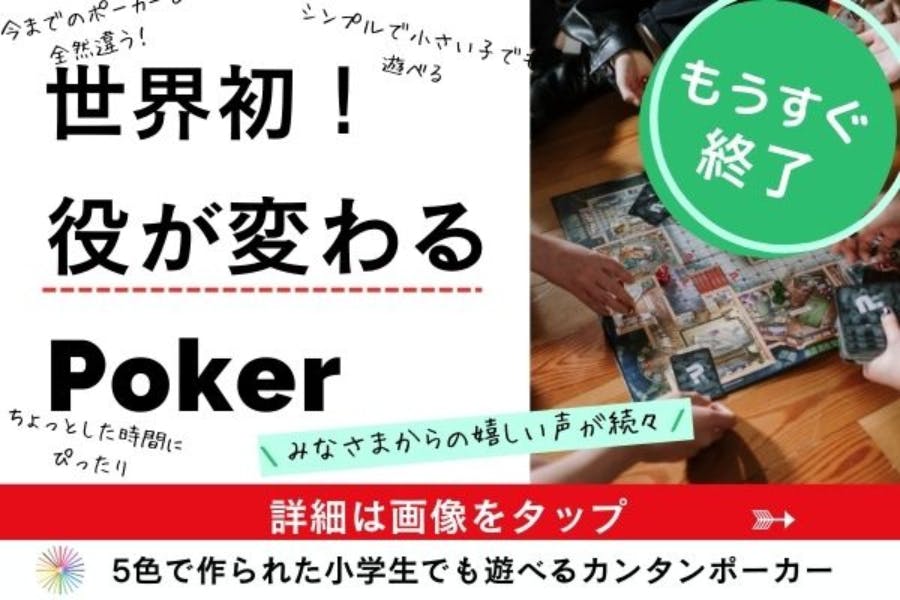 従来のポーカーの面白さに加えて、手軽にカンタンに遊べるようになった「今までなかった!」みんなのためのポーカーを支援しませんか?