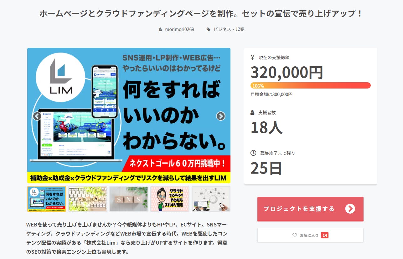 2022/05/05 20:27支援者、支援をご検討中の皆様 いつもお世話になっております。お陰様で、支援金額が100%を突破しました。ネクストゴール60万円に向かって頑張りますので、応援よろしくお願いいたします。WEBでの集客やマーケティングにお悩みの方々是非ともページの内容御覧ください。 もっと見る