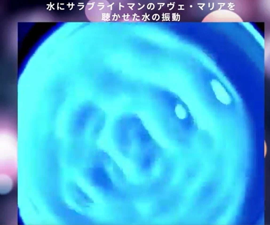 振動を可視化してみました。これはサラブライトマンのアヴェマリアを水に聴かせて振動を撮影したものです。