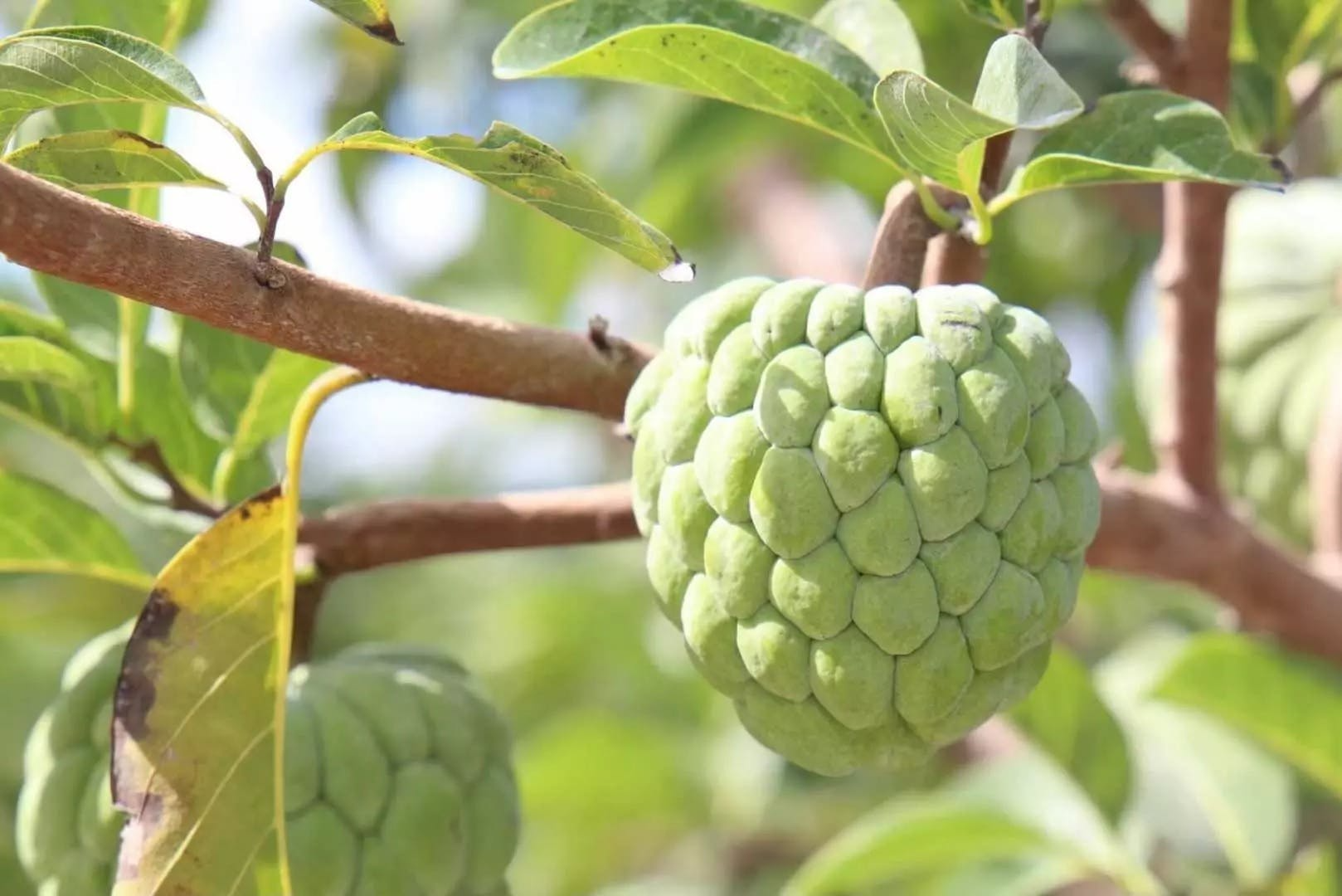 世界3大フルーツの一つであるチェリモヤ近縁種の バンレイシの別名です。その名の通り見た目はお釈迦様の頭のような形をしており英語表記ではSugarAPPLE。アジアで不動の人気を誇るフルーツです。