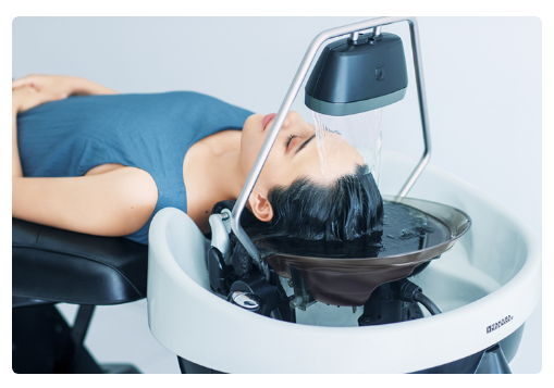 流れる水の音に耳を傾けながらフェイスラインからお湯を掛け流し、溜めたお湯に頭全体を浸すことで日常では体験できない至福のリラックスタイムを実現します。やわらかいお湯の流れで、首筋まで温められ全身がポカポカに♪