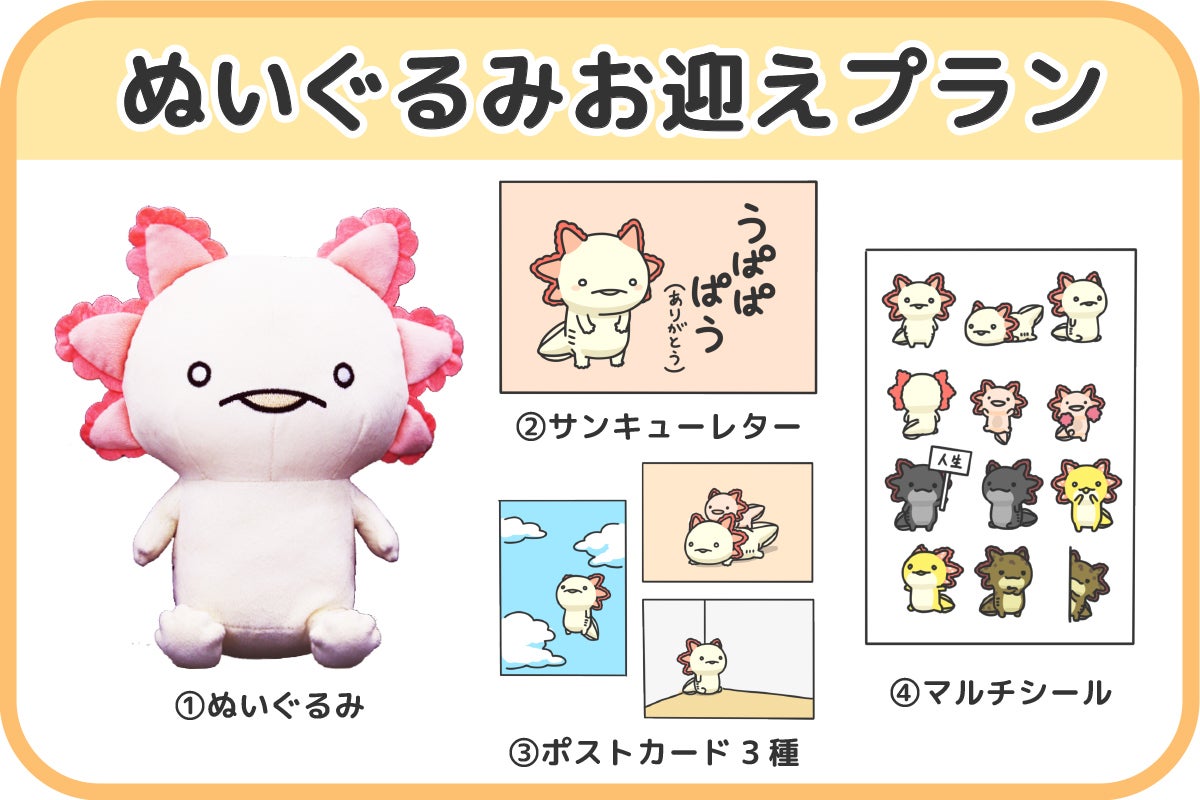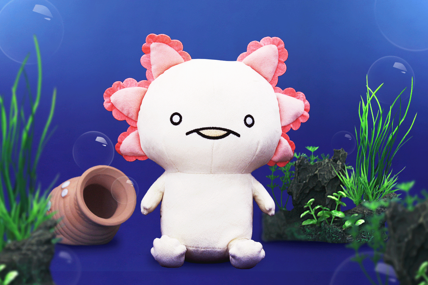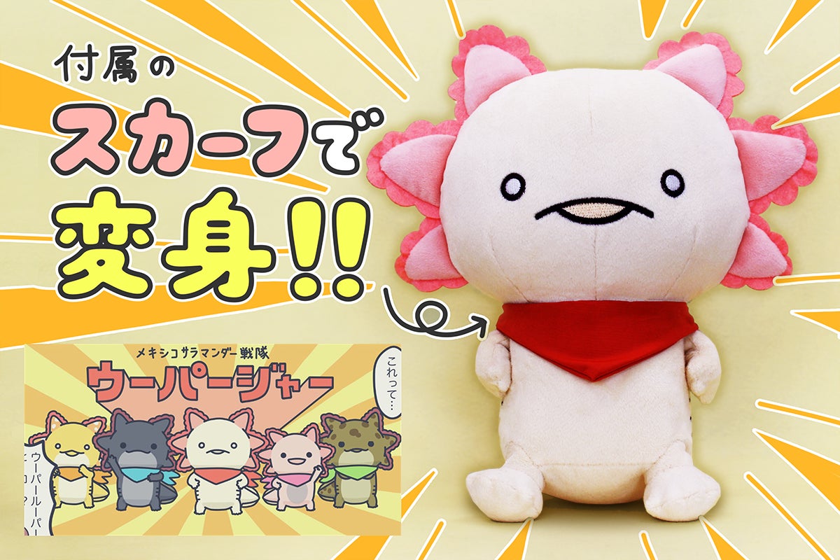 リターン品のぬいぐるみは、ウーパールーパーの何を考えているのか分からない表情を忠実に再現するため、ミリ単位でこだわって監修させて頂きました。